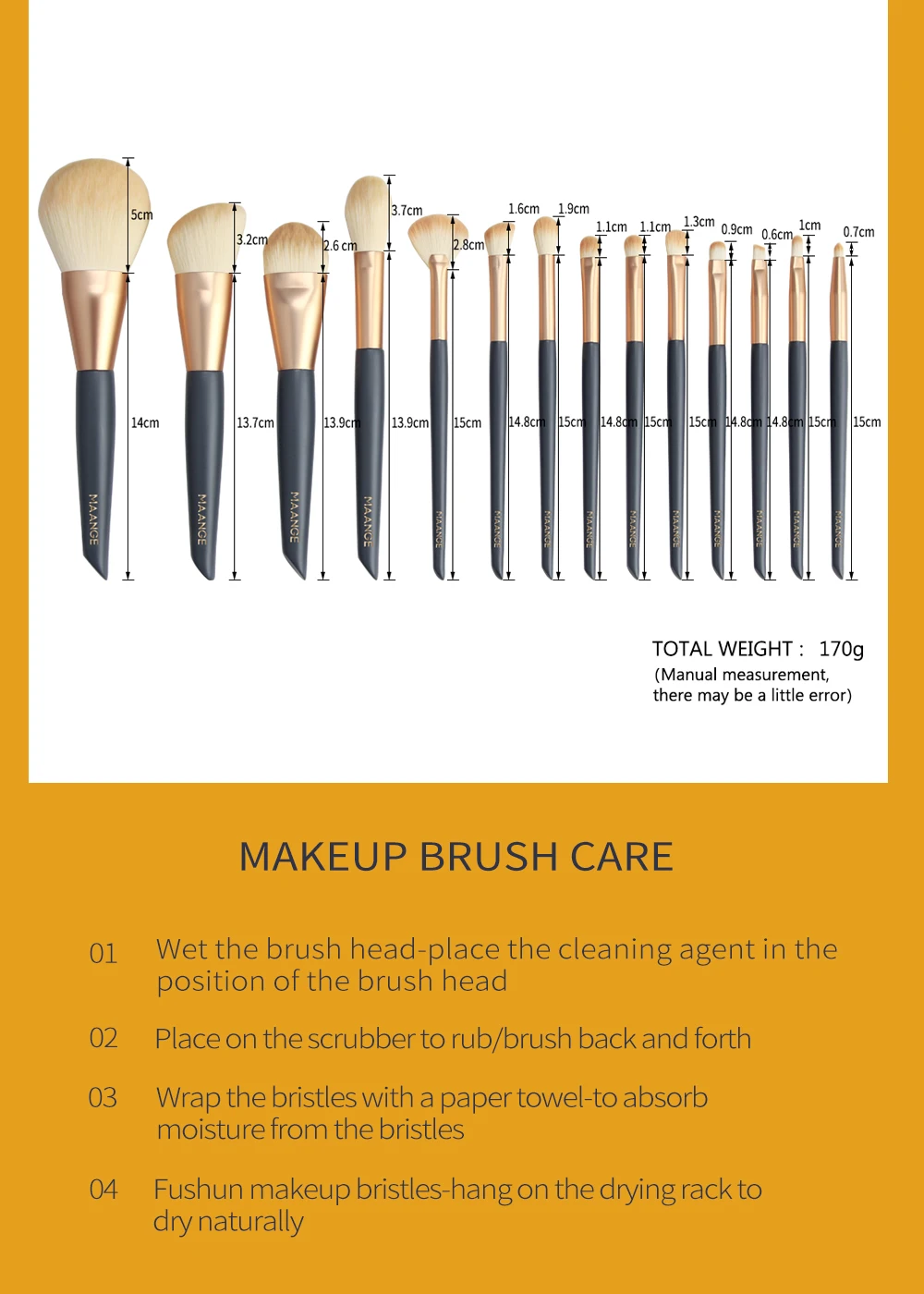 Набор кистей для макияжа MAANGE Pro, 14 шт., пудра, румяна, тени для век, смесь губ, деревянная косметика, Кисть для макияжа, набор инструментов Maquiagem