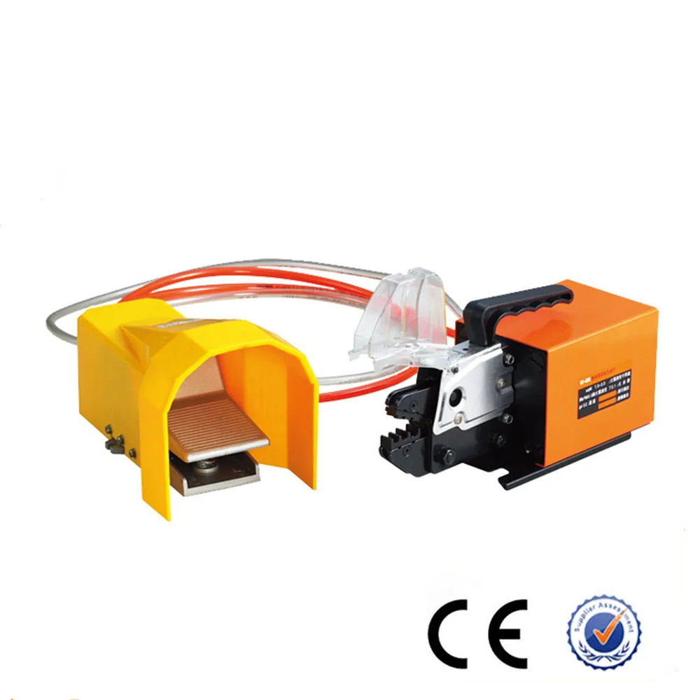 Машина управляется двойным действием нормального цилиндра, который имеет преимущества высокой эффективности и качества в обжимной силе и скорости. Машина подходит для обжима многих видов клемм. Наборы штампов взаимозаменяемы с нашими ручными обжимными инструментами. Поэтому мы можем предоставить вам все виды наборов штампов для обжима.