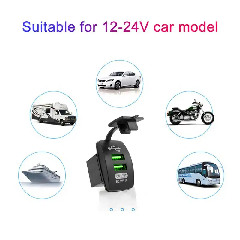 Универсальное автомобильное зарядное устройство, 5 В, 3,1 А, водонепроницаемое, с двумя USB-портами, автомобильный адаптер, для автомобиля, яхты, для модификации домов на колесах, двойной USB-переключатель, аксессуары для модификации транспортных средств и сосудов