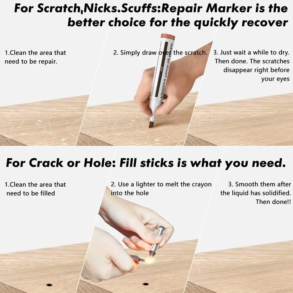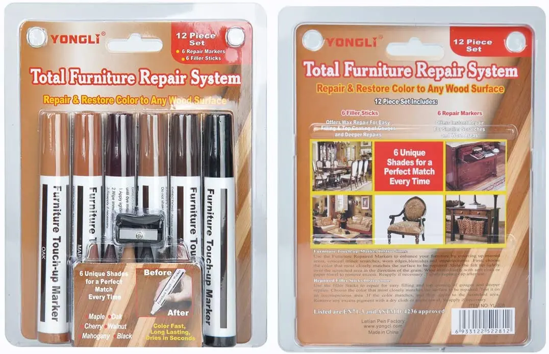 3. Высококачественные маркеры и восковые палочки, которые покрывают царапины, царапины, потертости и обесцвечивание мебели, шкафов
