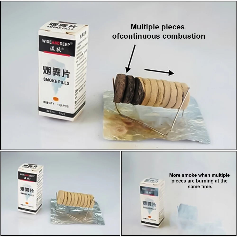 3. Использование и дозировка: дымовая шашка проложена теплоизоляционной платой, воспламеняется и помещается в демонстрационный колпак воздухоочистителя. Мгновенно будет образовываться большое количество дыма, а для каждой демонстрации будет использоваться половина или одна штука.