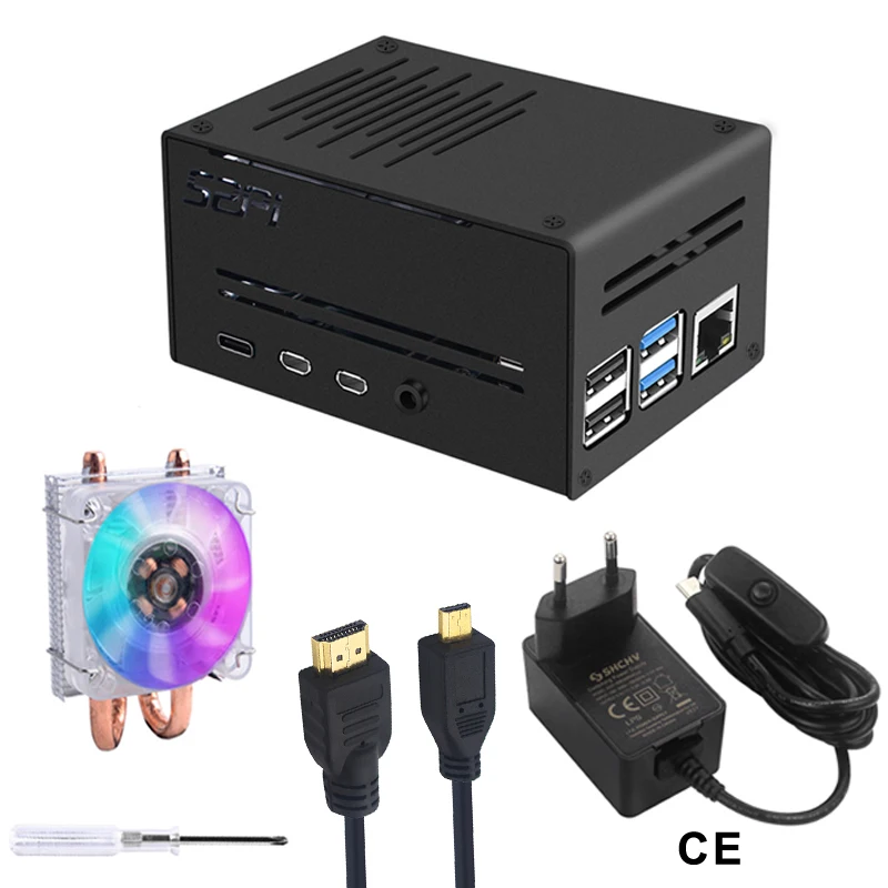 52Pi металлический чехол с вентилятором в виде ледяной башни, 7 цветов, светодиодный светильник RGB, медная трубка, Охлаждающие вентиляторы для Raspberry Pi 4 Model B