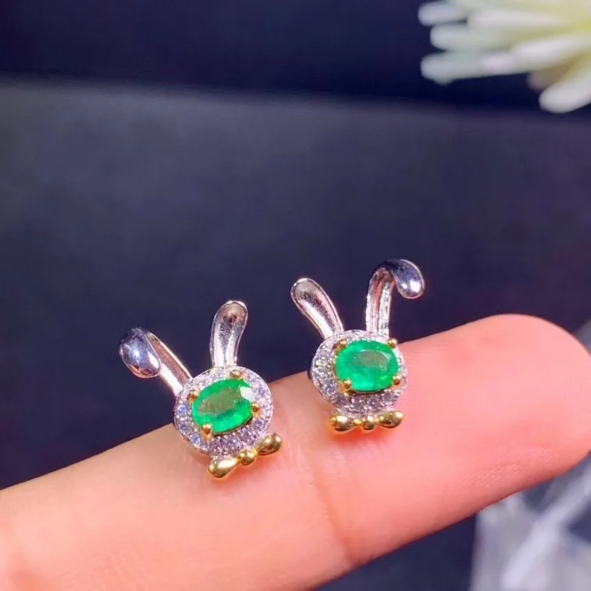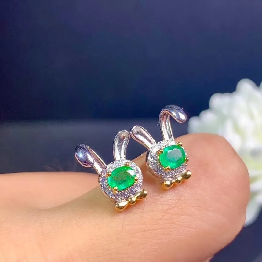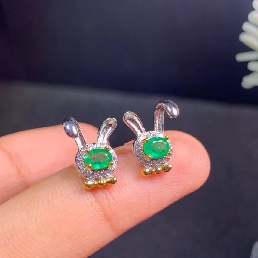 Новые серьги с натуральным изумрудом 925 Серебряные женские серьги двухцветные гальванические процесс милый и милый стиль