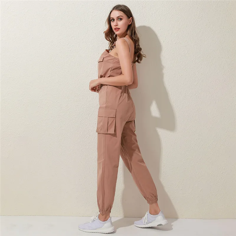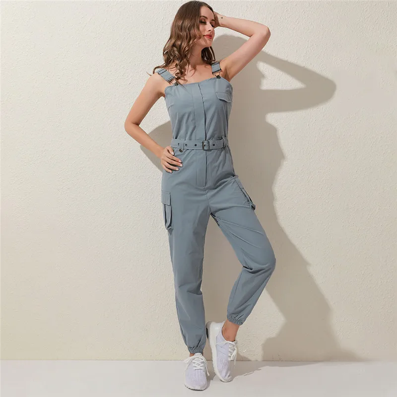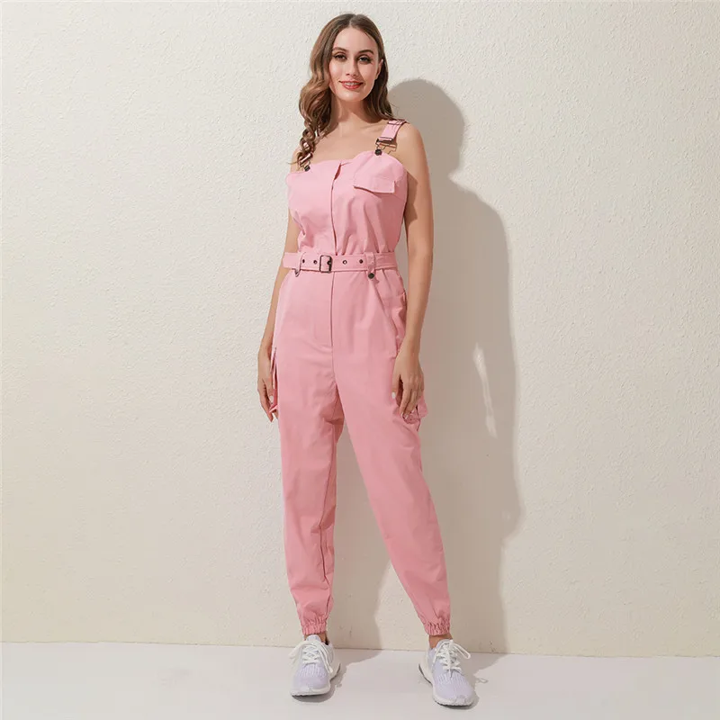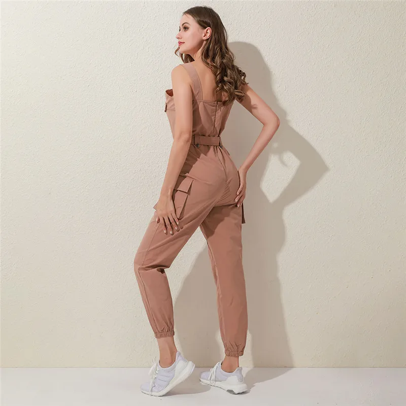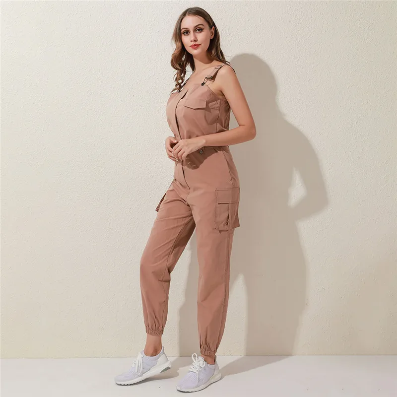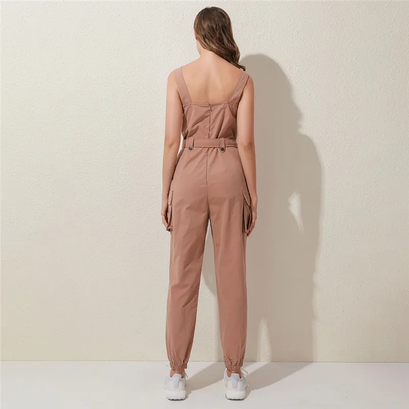 Женский Повседневный однотонный комбинезон 2020, Летний комбинезон с глубоким v-образным вырезом и пуговицами, офисный комбинезон с коротким рукавом, цельный комбинезон с поясом