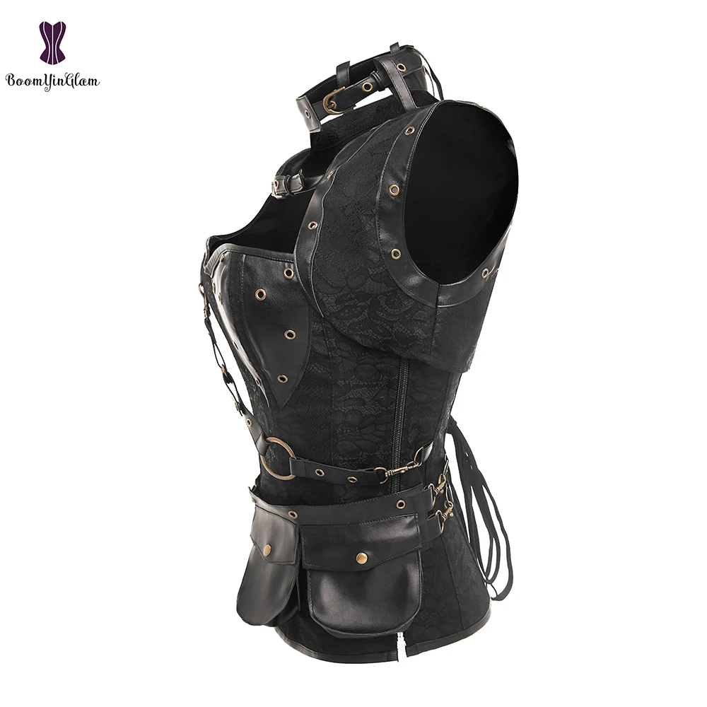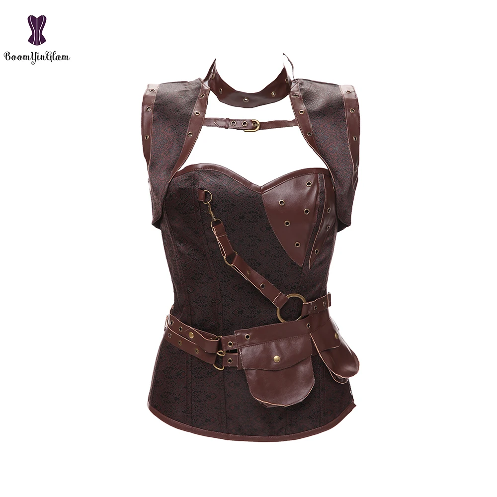 Женский Готический винтажный корсет в стиле стимпанк, черное, серое, коричневое, стальное, приталенное бюстье, топ, корсеты, S-6XL