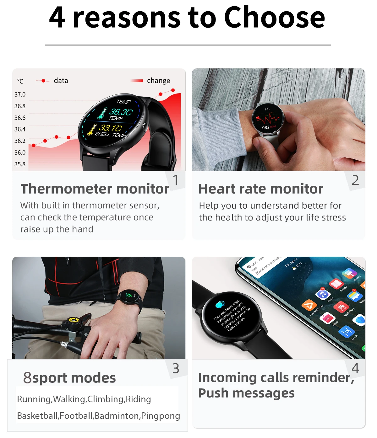 Смарт-часы K21 термометр водонепроницаемый фитнес-трекер кровяного давления 8 спортивных режимов женский браслет Смарт-часы для Android IOS