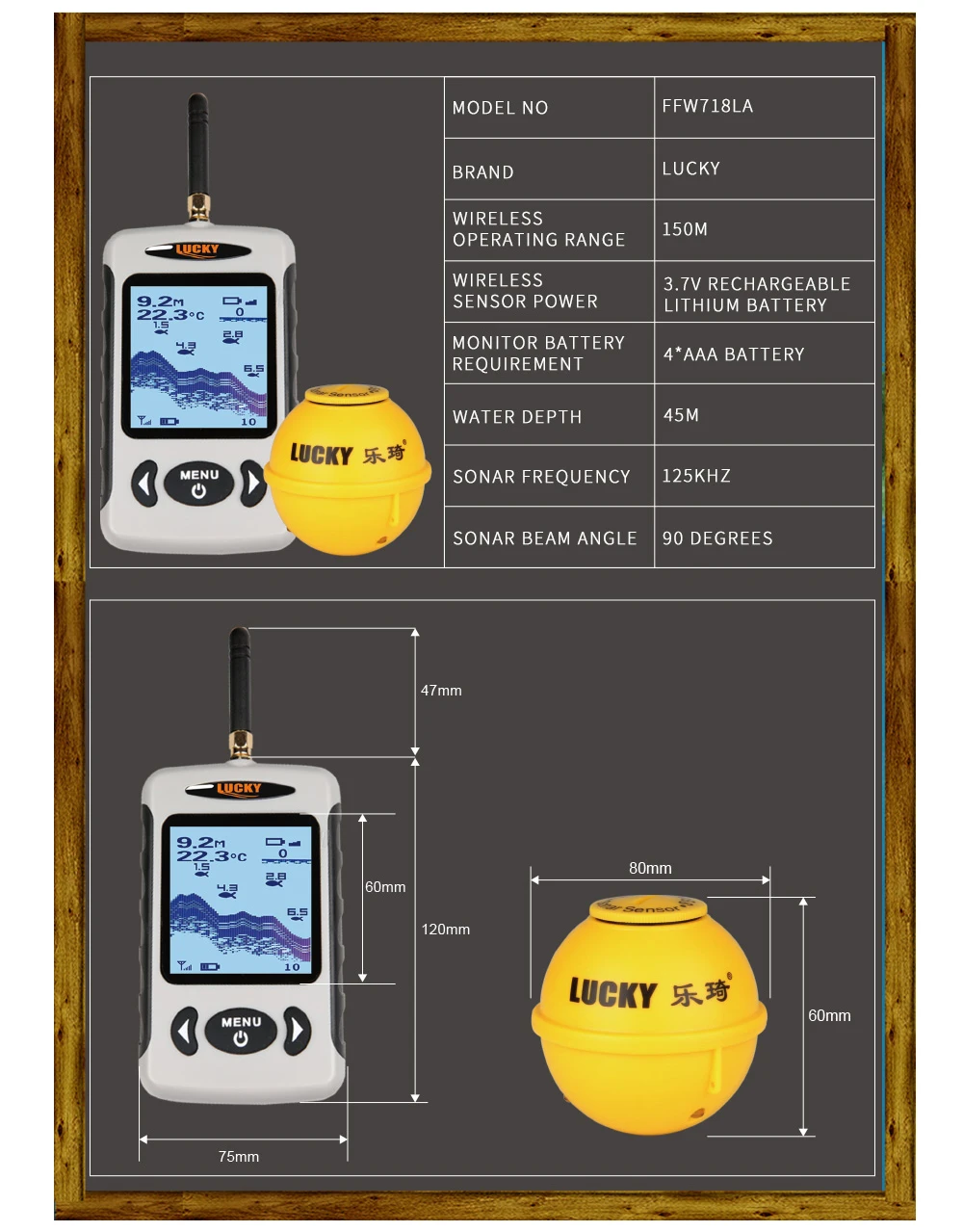 5) беспроводной гидролокатор: угол луча 90 градусов в 125 кГц