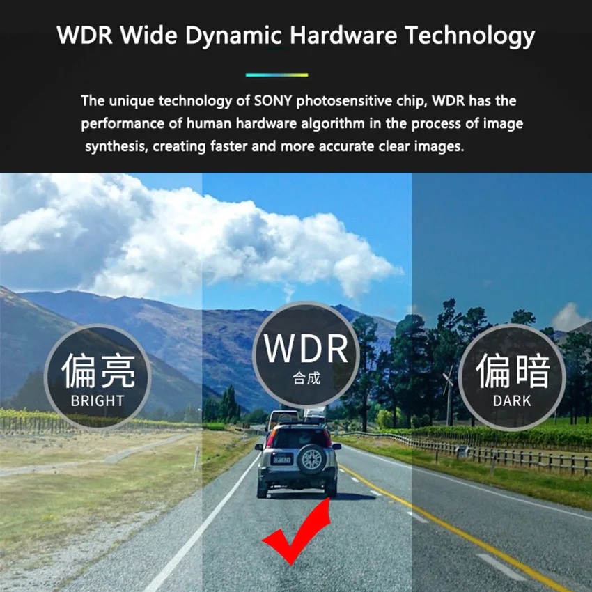 Allow a 170° Superwide viewing angle to be recorded and enable drivers to see 4 lanes of traffic.Along with 7 glass Lens, it can provide light transmission, thus recording crystal clear video