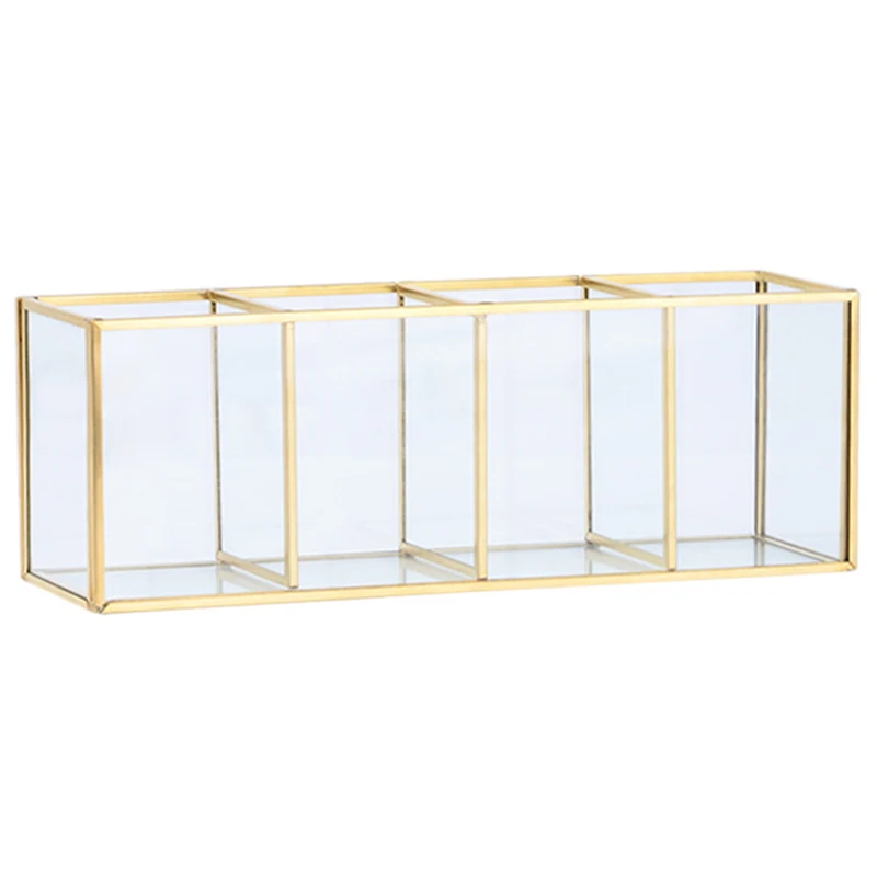 Скандинавская Золотая сетка, стеклянная откидная коробка для хранения, Роскошная Современная косметика, контейнер для хранения, микро-пейзаж, Цветочная комната