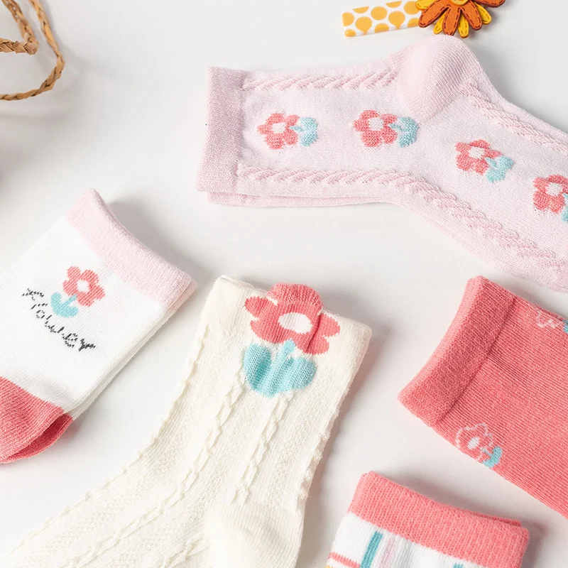 5 пар/лот, качественные розовые Хлопковые вязаные теплые детские носки с цветочным рисунком для девочек, новогодние носки детские короткие носки для женщин Miaoyoutong