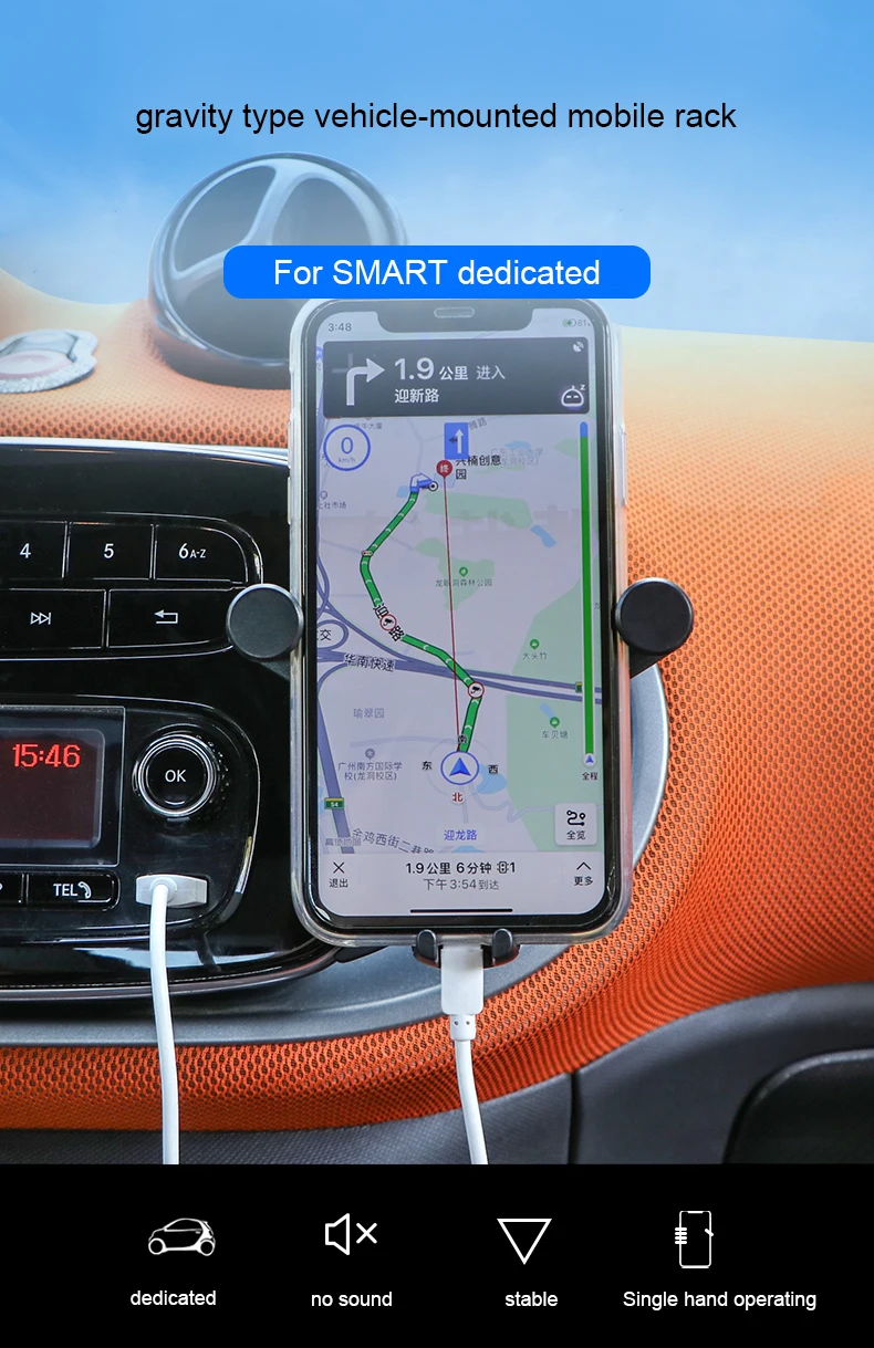 Автомобильный кронштейн мобильный телефон, навигационная рамка, Гравитационный кронштейн для Mercedes Smart 450, 451, 453, Fortwo, Forfour, Подставка для зарядки салона, аксессуары