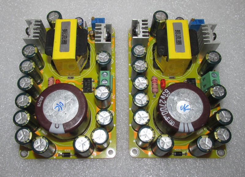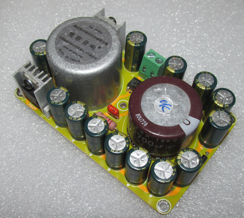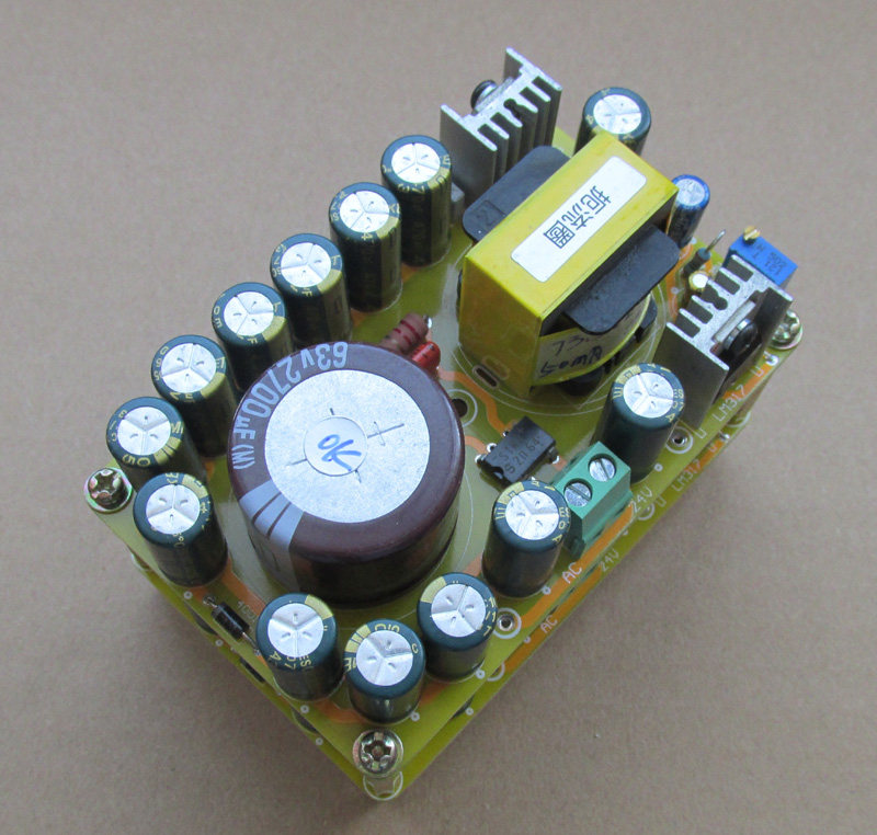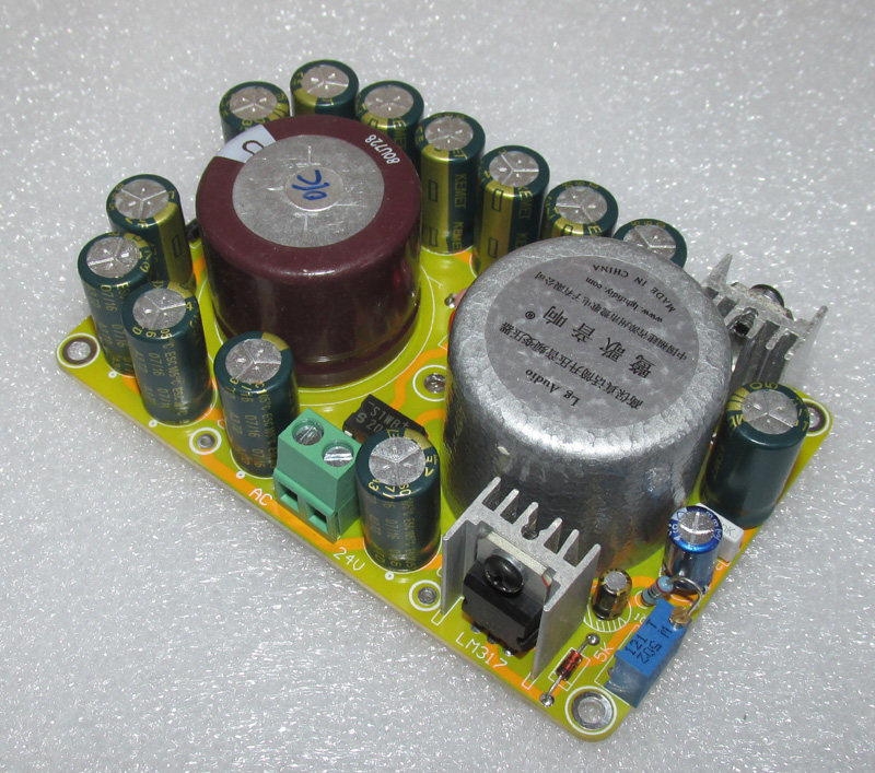 Отфильтрованы японскими химическими конденсаторами 2700UF35V и American Meiji 13 470UF35V gold электролитическими конденсаторами общей емкостью 8810 мкФ. 12H50m резьбовой большой индуктивности, плюс Железный медный экран. Импортный Трехконтактный стабилизированный напряжение 7824 и LM317 регулируемый стабилизированный блок питания серии super. Регулируемая готовая плата. Двойная группа переменного тока (четыре линии), вход 24 В, регулируемый выход ± 1,2 В-± 26 В постоянного тока, двухступенчатая Стабилизация напряжения, схема супер стабилизации напряжения, Линейный источник питания. Он специально разработан для обеспечения высококачественного поддерживающего регулируемого источника питания для предварительных усилителей Hi-Fi и операционных усилителей повышенной температуры. Не подходит для регуляторов низкого тока для предварительных этапов, усилителей наушников, цифровых схем, усилителей напряжения и двигателей «сделай сам».