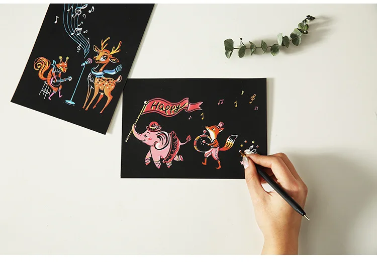 Обучающие Дети-Используйте скребок, чтобы поцарапать черную матовую поверхность бумаги, раскрывая фон, поэтому fun plus позволяет удивительное творческое искусство, знаки и многое другое! Отлично подходит для занятий искусством и ремеслами для детей или взрослых художников! Пусть дети заняты этим восхитительным ремеслом!