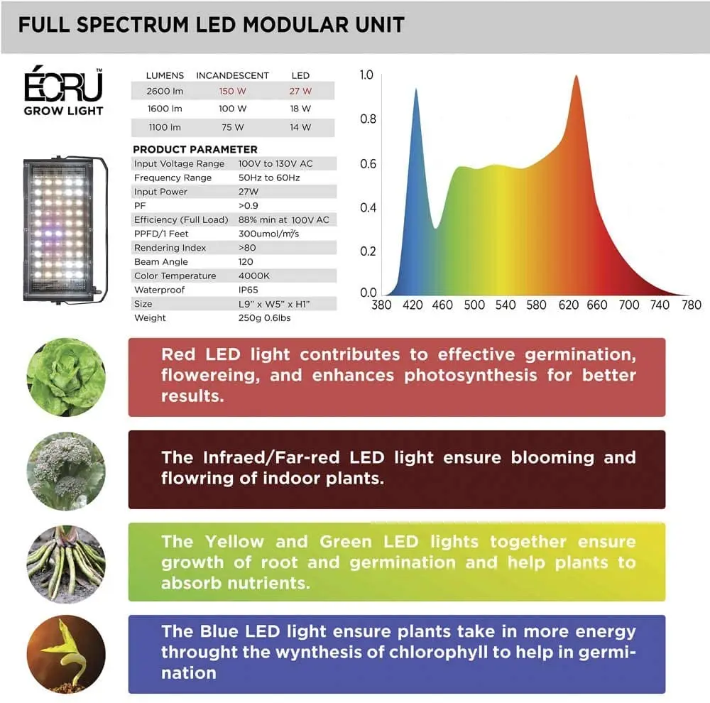 Описание: Название продукта: светодиодный светильник для выращивания растений Полный спектр: красный светодиод + синий светодиод + теплый белый светодиод + холодный белый светодиод Номинальная мощность: 800 Вт Фактическая мощность: 30 Вт Особенности: Улучшенная технология чипа-мы продуманно разработали наш светодиодный светильник, используя наши Энергосберегающие Светодиодный чипы, которые наши диоды больше и ярче, чем средний светодиодный чип. Это приводит к тому, что наш светильник для выращивания на 20% больше PAR (фотосинтезированное активное излучение) и люмен, чем стандартный светодиодный светильник s. Энергоэффективность-наш светодиодный светильник может служить дольше, чем традиционный растительный светильник s. Для большего роста палатки или увеличения площади, просто добавьте больше панелей на светильник, чтобы иметь достаточно покрытия. Этот светильник может заменить традиционные 800 Вт HPS/MH лампы, потребляя всего 30 Вт, экономя энергию до 40%! Полноспектральный светильник для выращивания-наш светодиодный светильник обеспечивает идеальное сочетание цветового оттенка, соответствующий спектру солнечного светильника и шкале Кельвина, для всех этапов роста, А также усиленный красный и синий светильник одновременно. Он включает в себя теплый и холодный белый светильник с разнообразным красным, синим и УФ-светильник s, который идеально подходит для вашего собственного внутреннего садоводства, полки и палатки Идеально подходит для клонирования, растительности и цветения-благодаря нашему светодиодный светильник для выращивания внутри помещений, полный спектр светильник ing, идеально подходит для всех этапов роста растений. Наш светильник для выращивания идеален от выращивания растений от клона до начинающего, не меняя светильник s. Независимо от того, выращиваете ли вы помидоры, овощи, клубнику, перец, микрозеленый, гидро или траву, этот светильник для выращивания покрывает все стадии растущих потребностей, и это лучшее дополнение для высокой урожайности. Без вентилятора и шума-этот светильник для выращивания будет тихим, когда он работает без вентилятора и шума. Эта лампа оснащена автоматическим преобразователем температуры. Когда температура достигает определенной температуры, температура упадет. IP66 водонепроницаемый-он может защитить светильник от повреждений, вызванных влажной средой, например, снегом, дождем или влажной погодой. Три режима установки-регулируемый кронштейн на 180 °, удобный Для регулировки угла лампы для ваших растений. Три способа установки: 1) Кронштейн стоит на полу или столе. 2) устанавливается на стену. 3) подвешивание с потолка с помощью подвесного веревки.