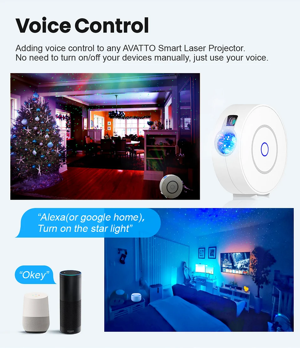 [Беспроводное дистанционное управление через приложение и Amazon Alexa, голосовое управление Google Home] - 2020 новейший Звездный проектор, может управляться светодиодом через приложение smart life и умный динамик, такой как amazon alexa, google home и т. д. Инновация для традиционного звездного проектора. Более умные и настраиваемые варианты.