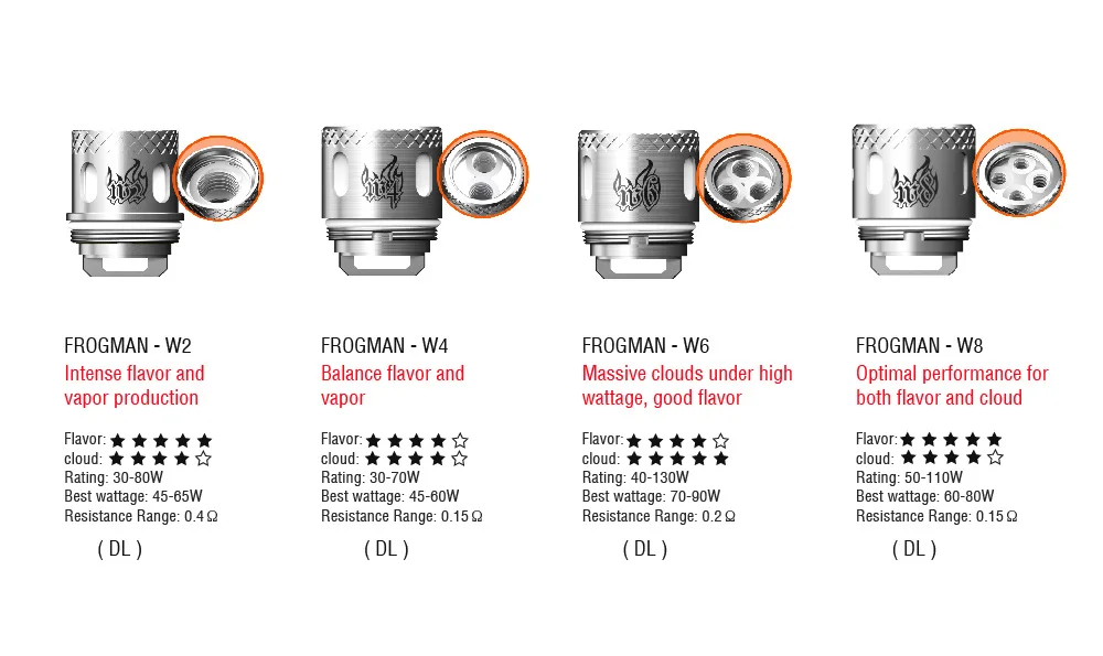Сменные катушки VAPTIO Frogman предназначены для использования с баком VAPTIO Frogman Sub-Ohm. Амфибия катушки приходят в семь видов: 0,4 Ом W2 катушки, 0,15 Ом W4 катушки, 0,2 Ом W6 катушки, 0,15 Ом W8 катушки, 0,25 Ом X2 катушки, 0,2 Ом M1 Благодаря комбинации звуковых катушек из 0,2 Ом T1 катушки. Одна упаковка из 5 шт.