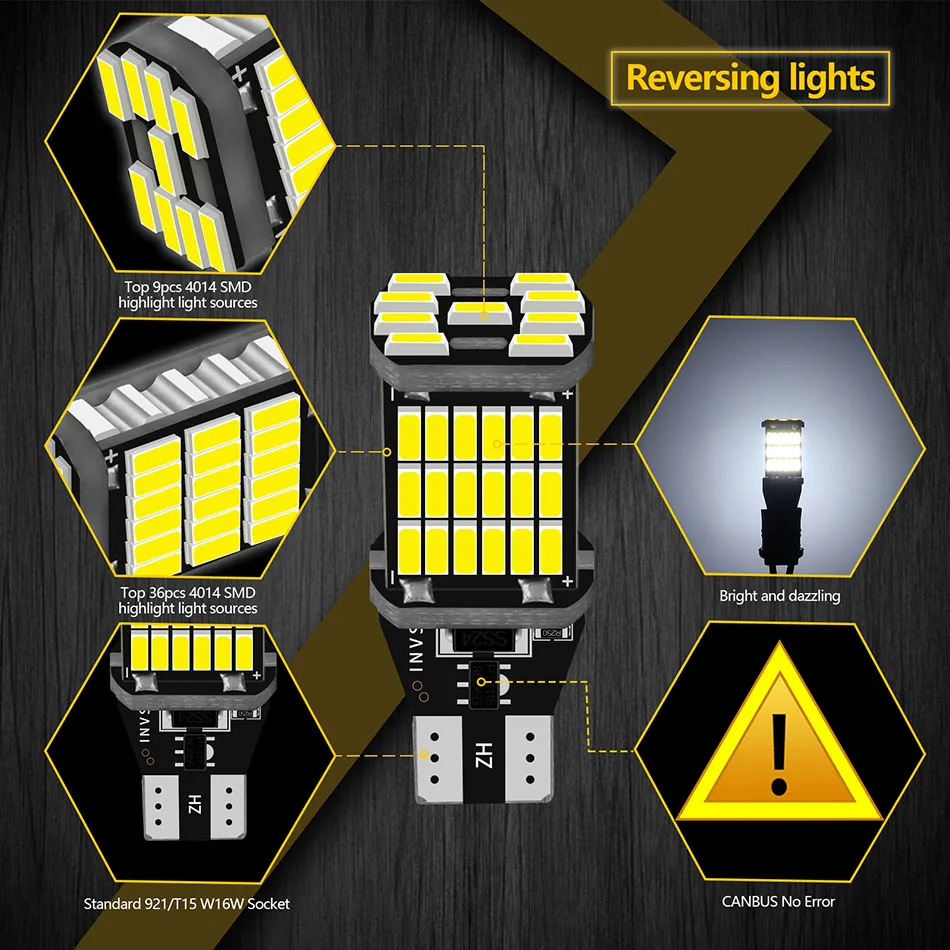 2 шт. Высокая мощность авто лампа белый DC 12V автомобиль обратный задний светильник T15 W16W 45 SMD 4014 указатель поворота светодиодный Canbus