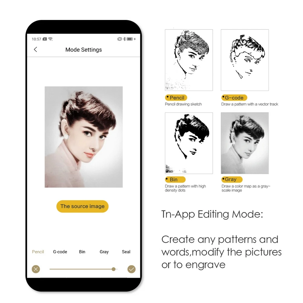 【Easy приложение, чтобы Применение и точный Precision】 в беспроводном режиме bluethooth контролируется смартфоном; Большую мощность, скорость зарядки увеличена почти, 0,01 мм точный точной гравировкой; Дальность гравировки: 10*10 см: четыре гравировальный станок режимов, импортируйте изображения, текст, рисунок или рисунок напрямую;