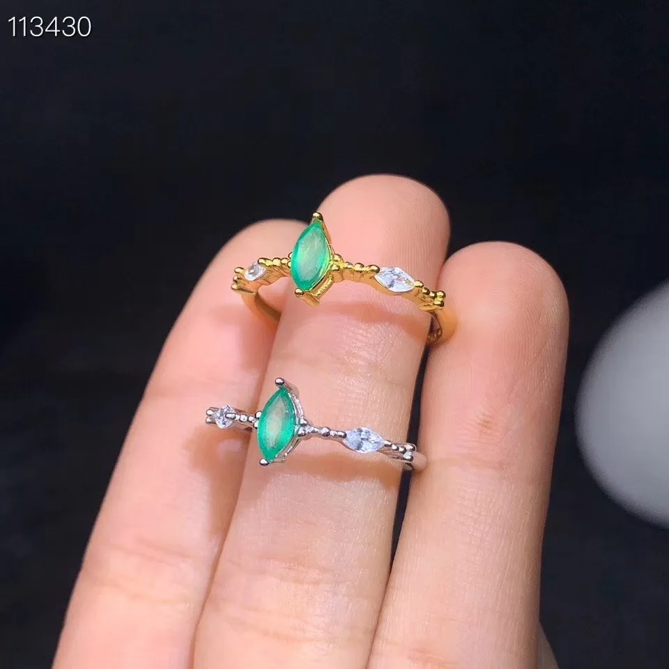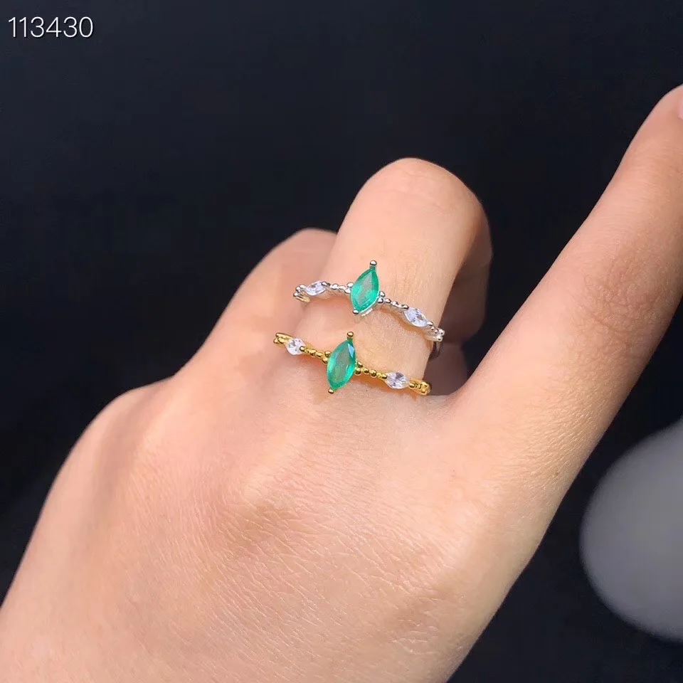 Women's new ring natural emerald ring 925 silver simple design fresh and lovely style