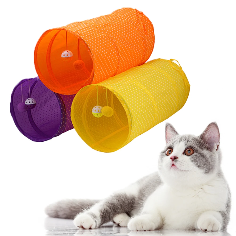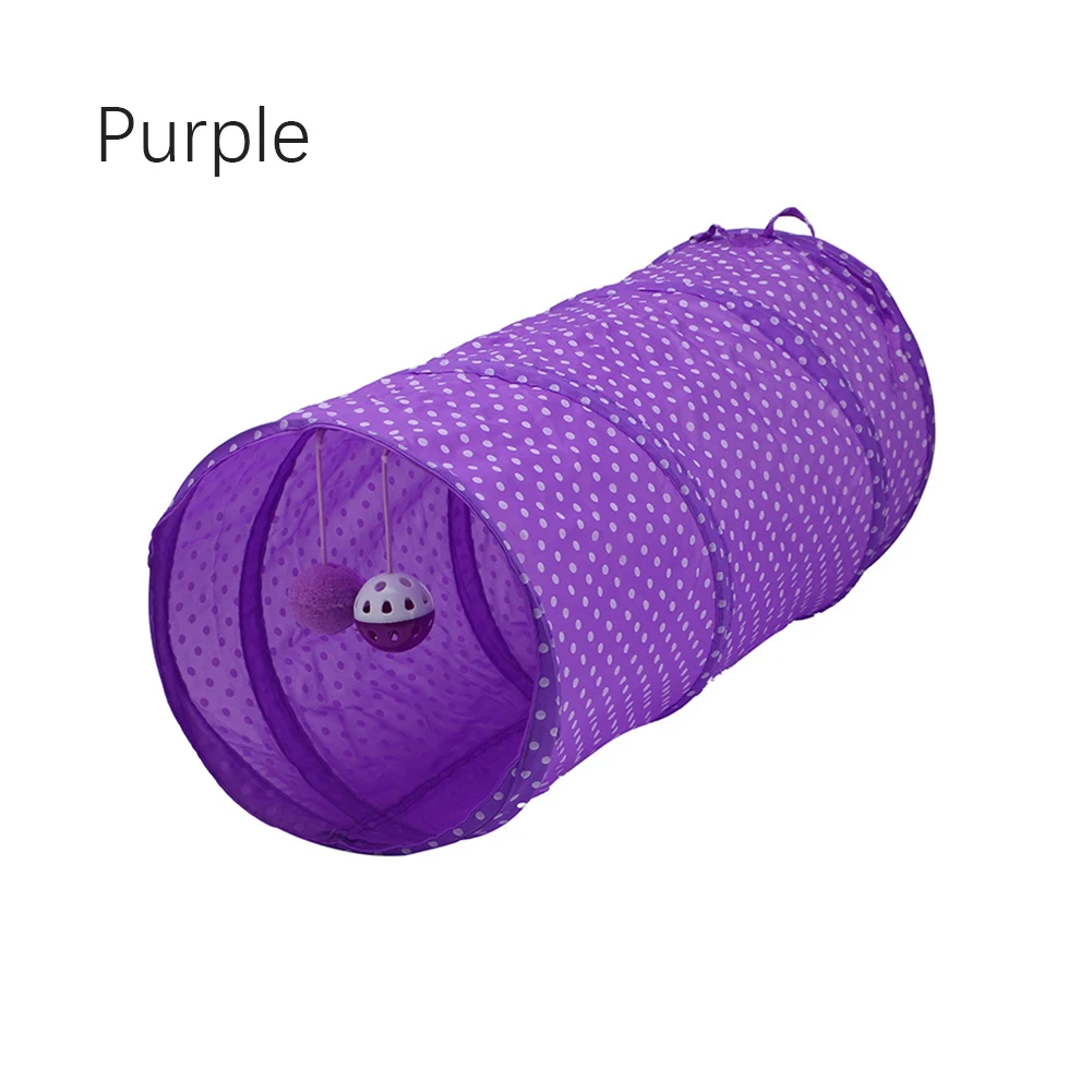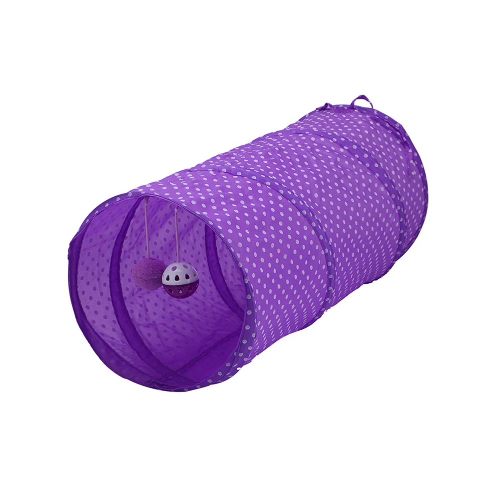 Милый туннель в горошек для кошек, 2 отверстия, игровые трубки, мячи, складной котенок, игрушки для домашних животных, щенок, кролик, игра в туннели, трубы