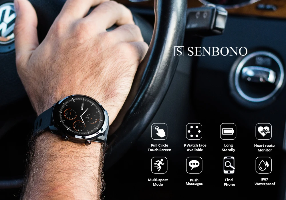 SENBONO Men Sport Smart Watch Fitness Tracker Support Clock Heart Rate Monitor Smartwatch Wristband for IOS Android Phone