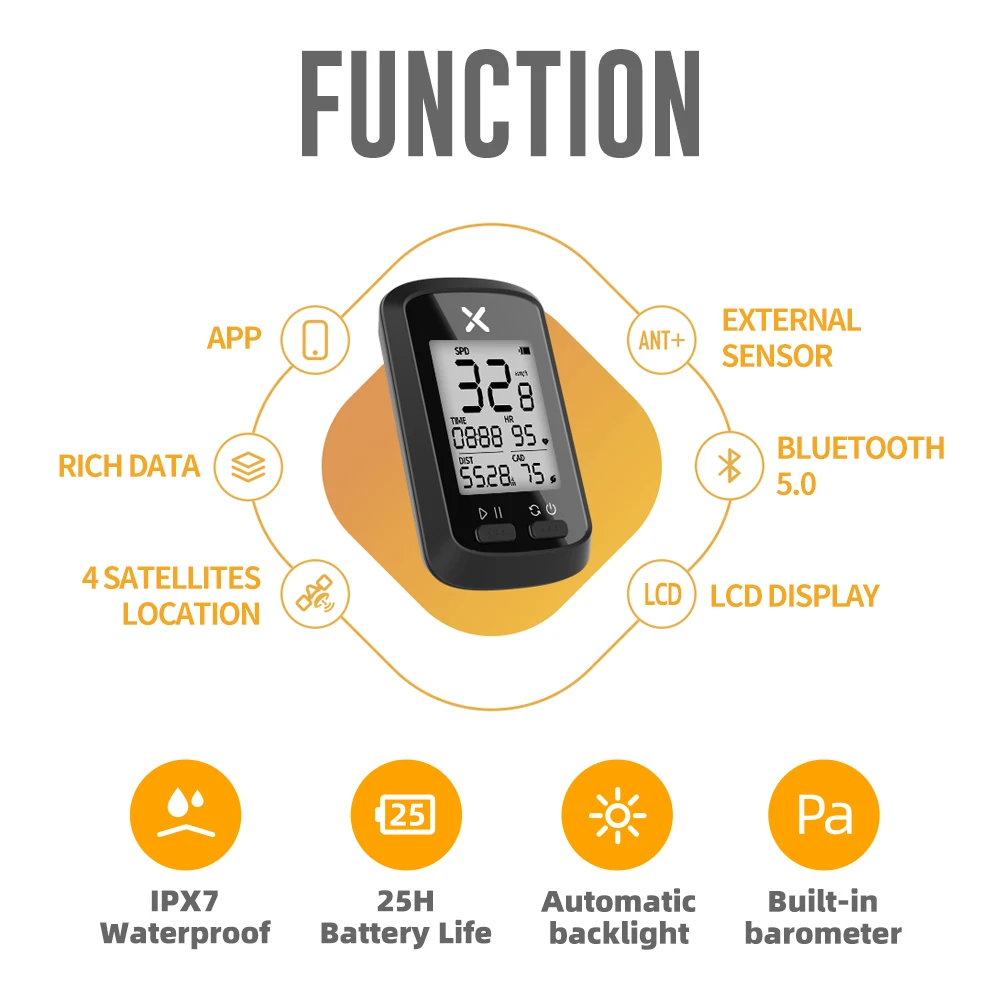 XOSS G + велосипедный компьютер1,8 дюймов ЖК-дисплей дисплей, автоматическая подсветка, 25hrs Время работы от аккумулятора, 15 видов записи данных, третий-вечерние платформы поделитесь информацией о нас.XOSS G + велосипедный компьютер поддерживает ANT + трансмиссия для внешних датчиков, таких как скорость, частота сердечных сокращений, датчики кадра и т. д. отслеживает каждый момент точно и точно.Встроенный GPS с 4 спутниковыми позиционными системами, включая BEIDOU,GPS,GLONASS, GALILEO, обеспечивает стабильное соединение на каждой поездке.С технологией IPX7, XOSS G + является водонепроницаемым, так что вы можете наслаждаться велоспортом во всех погодных условиях.Простота установки, подходит для Garmin,XOSS на передней панели.Упаковочный лист:1 x XOSS G/G + компьютер:2 x резинки1x резиновая прокладкаКрепление для велосипедного компьютера-1 шт.1 х USB кабель
