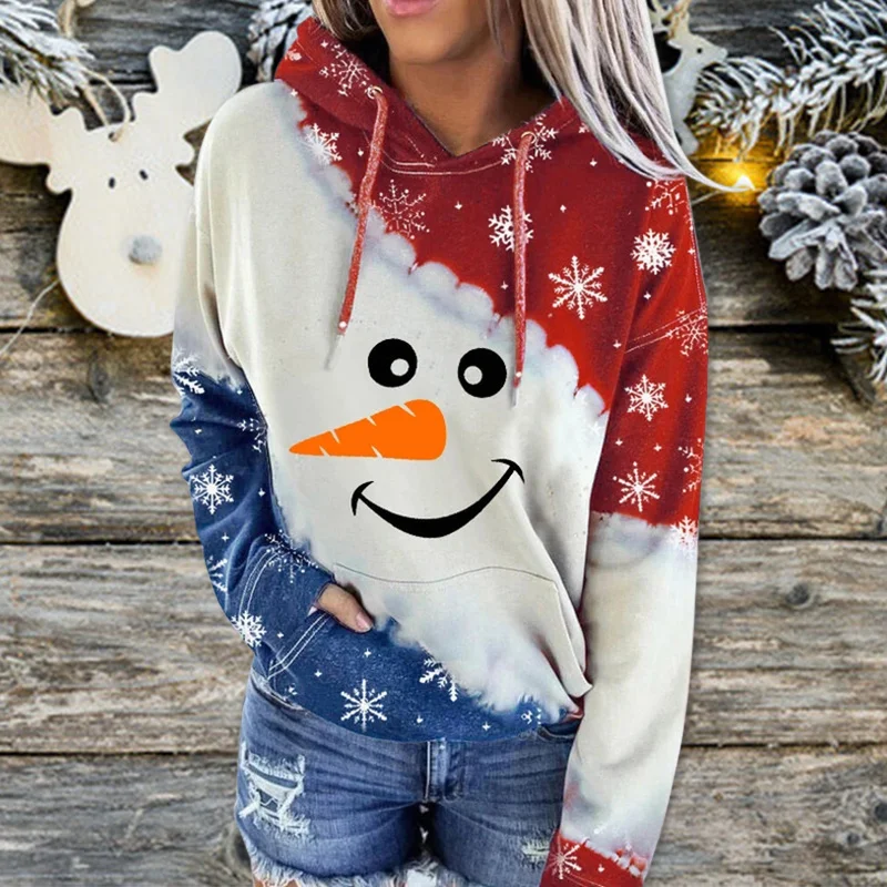 3. Мы создаем эту рождественскую толстовку с длинными рукавами, завязками, новым рождественским принтом, большими передними карманами.