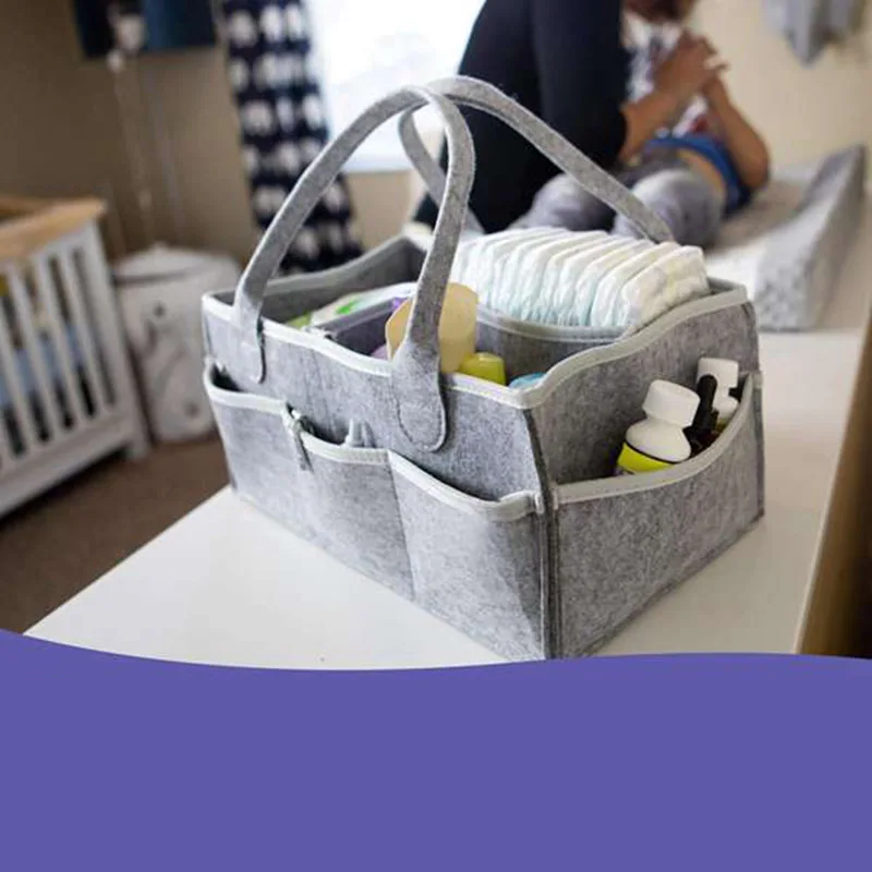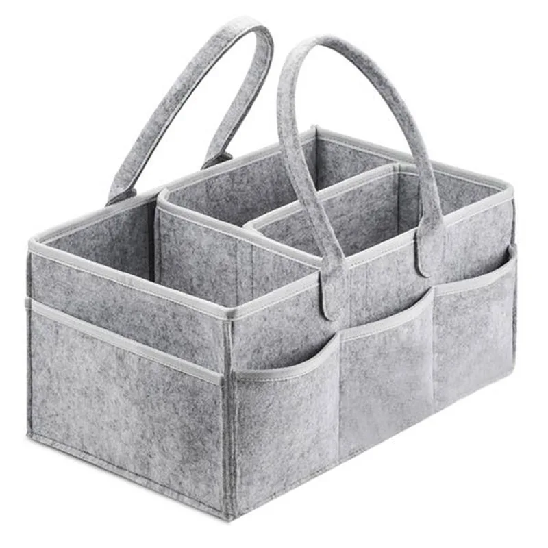Eco-friendly, safe, strong, portable, foldable and durable. Specially, this diaper caddy has a protective ribbon around the sharp edges for perfect safety and security.