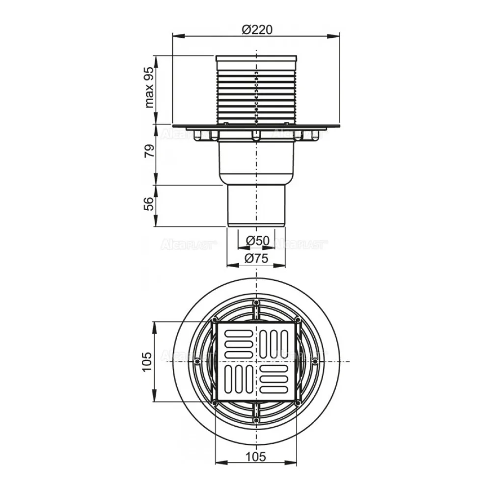 Дополнительная информация: Сливной трап 105 x 105/50/75 группа нагрузки (Csn En 1253) K3 сток воды подводка – прямая решетка – нержавеющая сталь гидрозатвор – комбинированный гидрозатвор Smart для установки внутри помещения для установки снаружи помещения возможность комбинирования с универсальными компонентами