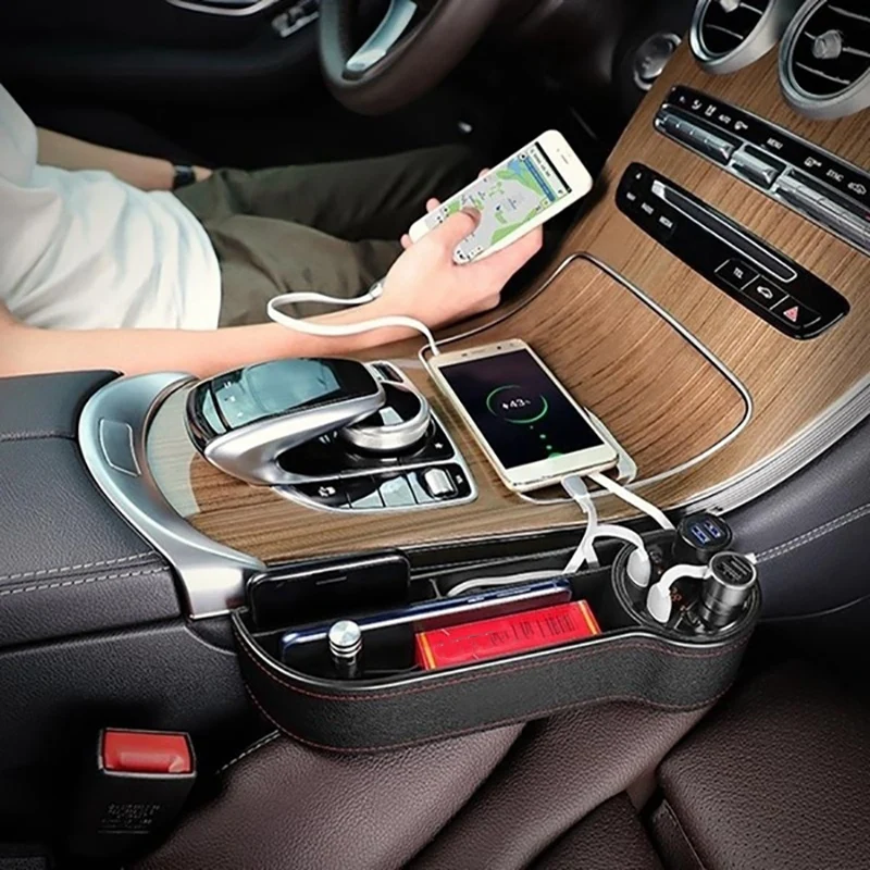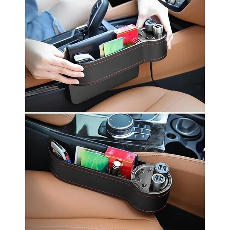 Многофункциональная Универсальная кожаная боковая коробка для хранения сидений автомобиля Catcher с двумя usb-портами Cigarrete Зажигалка