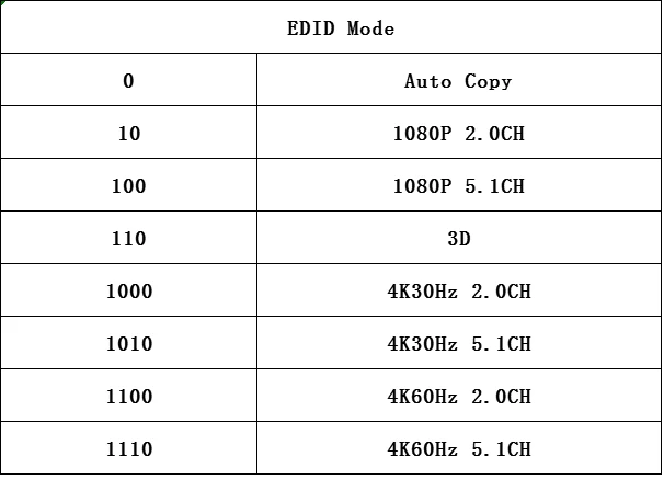 > Поддержка 3D, наберите переключатель EDID в соответствии с фактическими потребностями, чтобы выбрать соответствующий 3D видео и аудио формат;