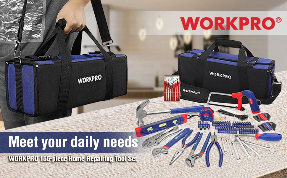 Этот WORKPRO 156 предметов Домашний набор инструментов для ремонта поставляется с широким открытым инструмент для полости рта сумка, легко носить с собой и брать с собой вокруг вашего дома или в офисе, на кухне, в гараже или мастерской. Идеально подходит для аварийного ремонта, например, для фиксации крана в ванной или для ремонта вашего велосипеда. Вы можете сделать некоторые дополнительные DIY, которые должны быть сделаны.