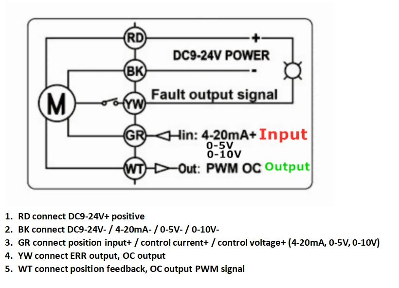 1. Корпус клапана: 2 способа NPT/BSP 1/2 ''-1 1/4'' DN8-DN32, UPVC. Размер отверстия: 15 мм-25 мм, полное отверстие, DN32 Размер отверстия: 25 мм. 2. Привод: 9-24VDC 5 проводов контроль и отзывы. Контрольный сигнал: 4-20 мА, 0-5 В, 0-10 в 3. Рабочий ток: ≤ 500 мА 4. Время открытия/закрытия: ≤ 7S Время задержки блокировки ротора: 2-4S Позиция: любое положение (0-100% в порядке) 5. Срок службы: 70000 раз 6. Макс. Сила крутящего момента: 4 нм 7. Кабель Длина: 0,5 м. Пожалуйста, свяжитесь со мной, если вам нужна индивидуальная длина! 8. Максимальное рабочее давление: 1 МПа 9. Температура окружающей среды: -15 ℃ ~ 60 ℃ 10. Температура жидкости: 5 ℃ ~ 55 ℃ 11. Привод Материал: ППО 12. Уплотнительный материал: ФКМ и ПТФЭ 13. Вращение привода: 90 градусов 14. Класс защиты от поражения электрическим током: IP67 15. С индикатором положения