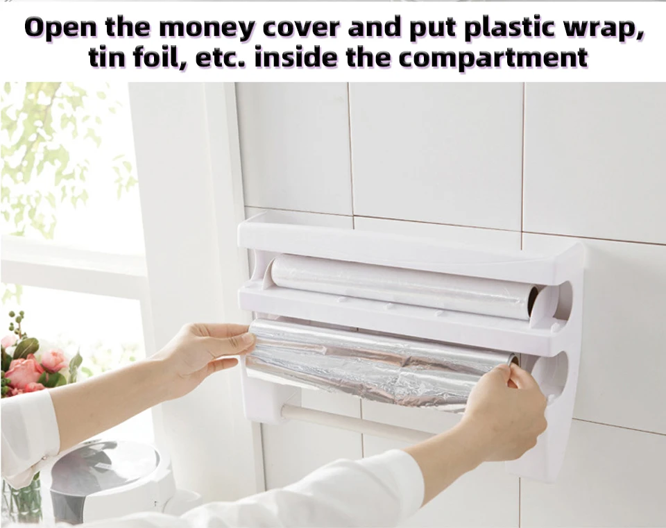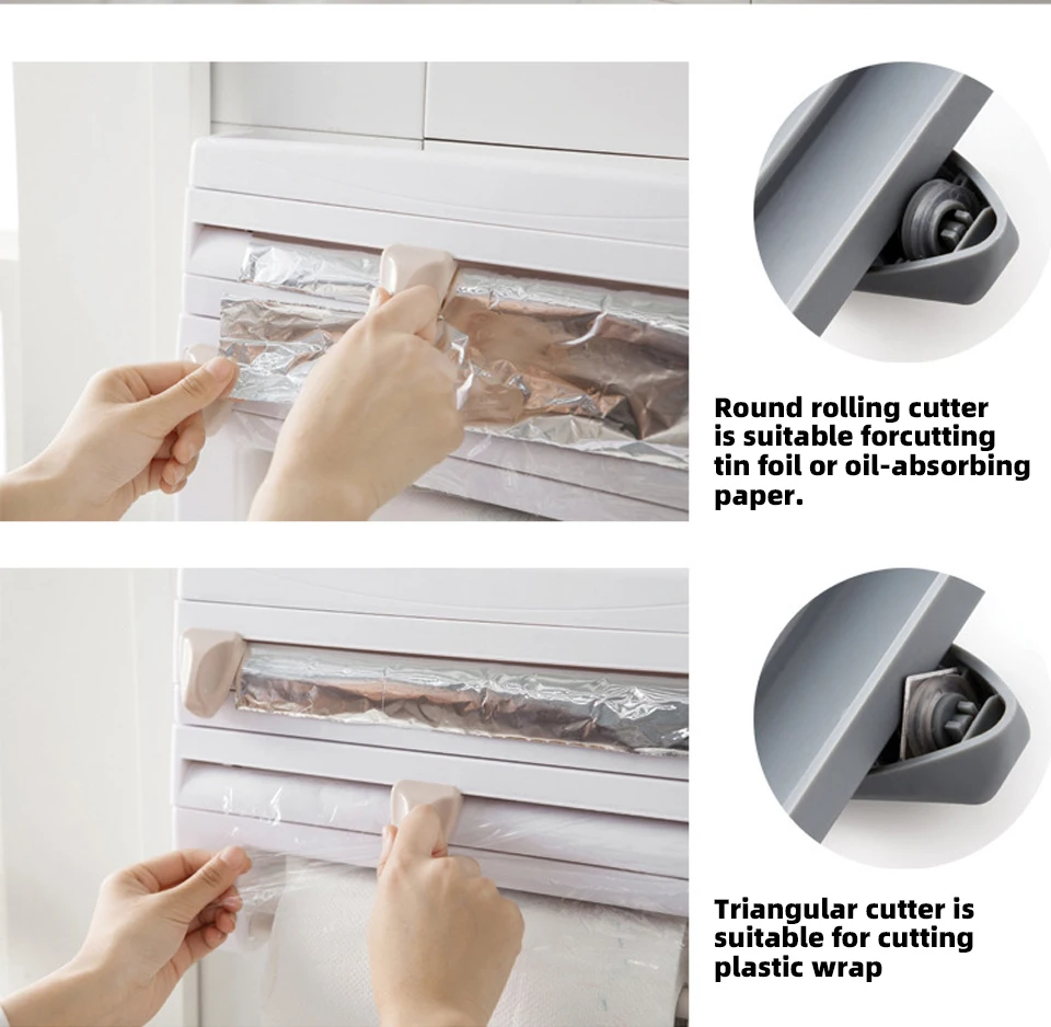 Скользящий резак обеспечивает легкость, точность резки с помощью одного пальца; Ведущий край цепляющейся пленки остается в готовом положении для следующего использования, устраняя отходы и застревающие края.