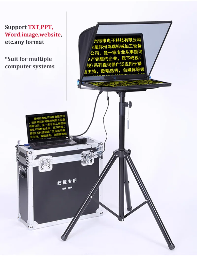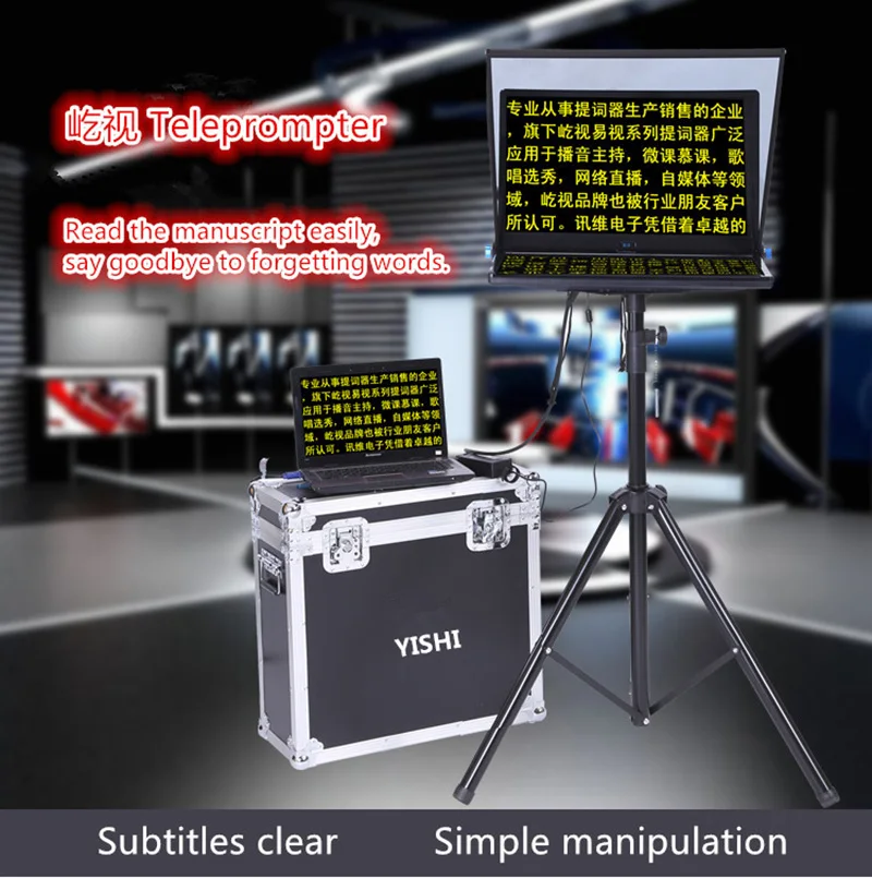 Название продукта: 22 дюйма портативный интегрированный teleprompter Материал изделия: стекло + металл Модель продукта: YS-ZB22P/ YS-ZB22PL Упаковка продукта: Заказная усовершенствованная воздушная коробка Область применения: Программное обеспечение текстового процессора Применимо к системе win7 win xp win10. Вы можете установить равномерную скорость прокрутки, размер текста и цвет. Различные хосты могут быть настроены для отображения разных цветов текста. Дистанция дистанционного управления: беспроводной пульт дистанционного управления на расстоянии 10-15 метров. Область применения: 1. Радио и телевизионные станции, школы, корпоративные учреждения, частные лица, сетевые красные якори и т. Д. 2. Надпись поддерживает SLR камеры, домашние камеры, небольшие DV камеры, большие DV камеры и другие модели. 3. Поддержка VGA, HDMI, AV видео прямого ввода. Список продуктов: 1. Импортный Сверхтонкий луч сплиттер-1 блок 2. Складные затемненные чехлы-1 комплект 3,22 дюймовый специальный зеркальный экран-1 4. Портативная воздушная коробка-1 5. Беспроводной пульт дистанционного управления-1 6. Цельный комплект-1 комплект 7. Специальные Кронштейны-1 8. Удлините Кабель HDMI-1 с 9. Удлините корень питания-1 корень 10. Сопутствующие аксессуары-1 комплект 11. Профессиональный программный процессор Word-1 Набор