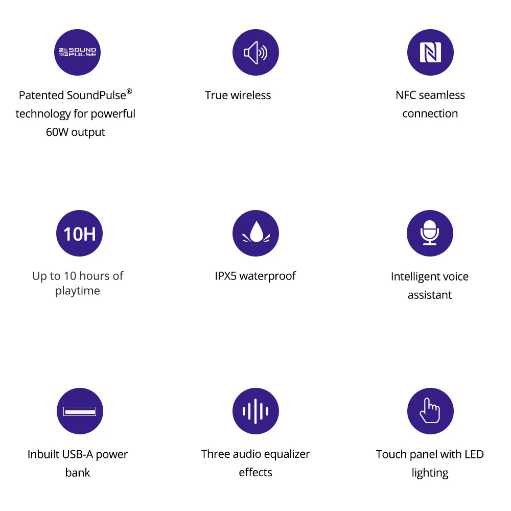 О: Tronsmart Mega Pro оснащен 2 твитерами, 1 НЧ-динамиком и 2 усилителями. Усилитель НЧ-динамика делает басы сильными и мощными. И два твитера также обеспечивают насыщенный и кристально чистый звук. Вместе это позволит лучше отличить звук высокой, средней и низкой частоты, что приводит к более четкому звуку.
