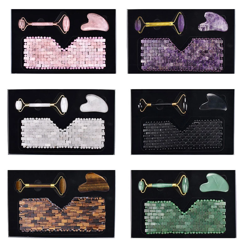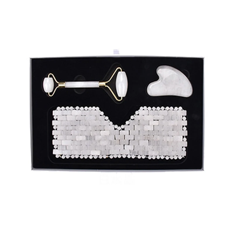 Натуральный розовый кварц Нефритовая маска для глаз ролик для массажа лица гуаша доска гуашь СКРЕБОК НАБОР холодная терапия глаз расслабляющий инструмент подарок с коробкой