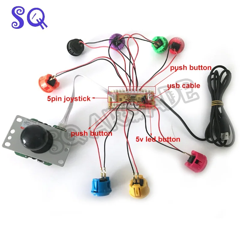 Аркады части Diy Kit USB Нулевая задержка кодировщик управления доска к ПК 5pin джойстик 30 мм копия Sanwa Кнопка 2,8 мм кабель Mame игра