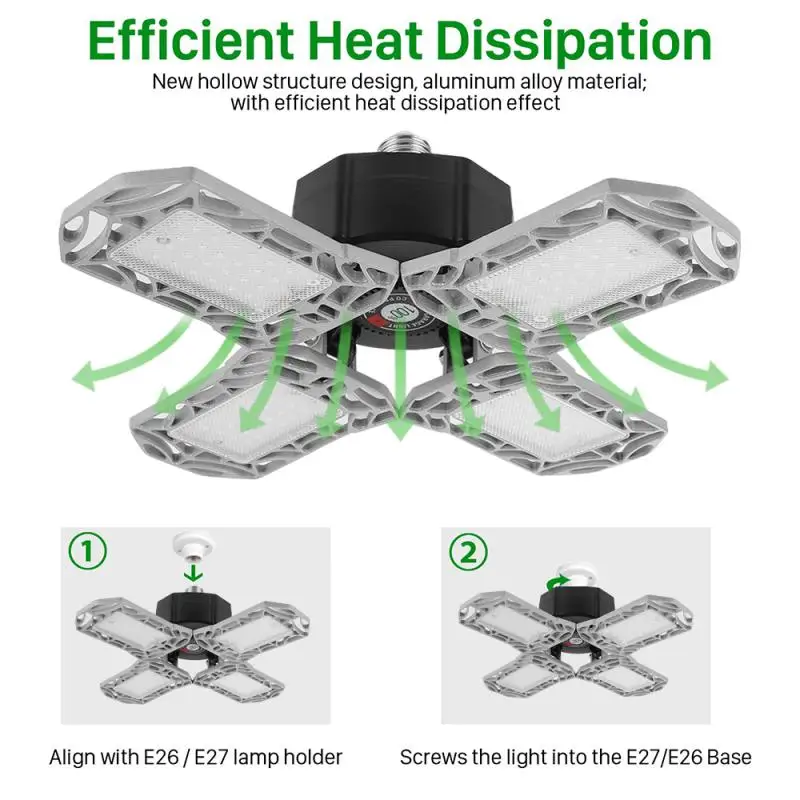 -Супер яркий светодиодный гараж светильник-с 4 Ультра-яркая подсветка с Регулируемый алюминиевый светодиодный головок-это особенности светодиодный технологии с 4*24 шт. наивысшего качества диоды для подавления переходных скачков напряжения, что общий объем 12000 люмен, таким образом, CRI80 +, дневной светильник 6000K для вашего гаража, обеспечивающий лучший внутренний светильник.