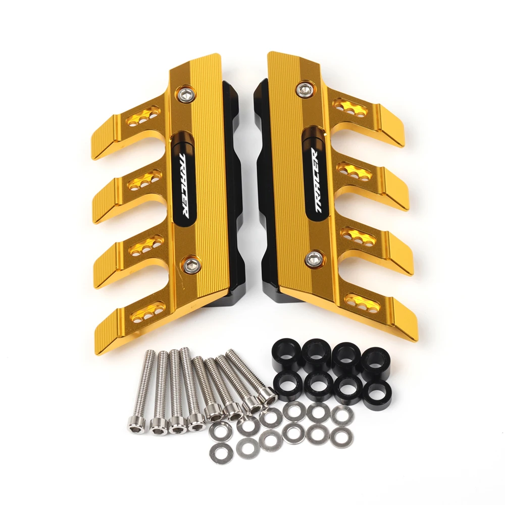 100% Brand New, High Quality Hard Wearing Anodised Surface Treatment Easy To Install,Installation instructions not included,Screw included . Fit for most of motorycle Front fender Please confirm 2 bolts on each side of the front fender of your motorcycle For Make:Yamaha Material:CNC Aluminum 6061 Position: Left & Right Condition: Brand New Quantity: 1 pair left and right Fitment for: TRACER 900 GT TRACER900/GT 2018-2019 2020 Tips:Please confirm 2 bolts on each side of the front fender of your motorcycle Item Pictures Colour:Titanium/Black/Golden/Red/Green Package Contents: 1set*Motorcycle Front Fender Slider Protection Guard Only the above package content, other products are not included.