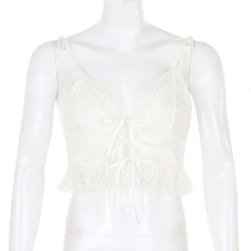 Майка, бюстье, корсеты, сексуальный укороченный топ с глубоким V-образным вырезом и кружевами в стиле пэчворк, Клубная одежда на шнуровке спереди, новая уличная одежда