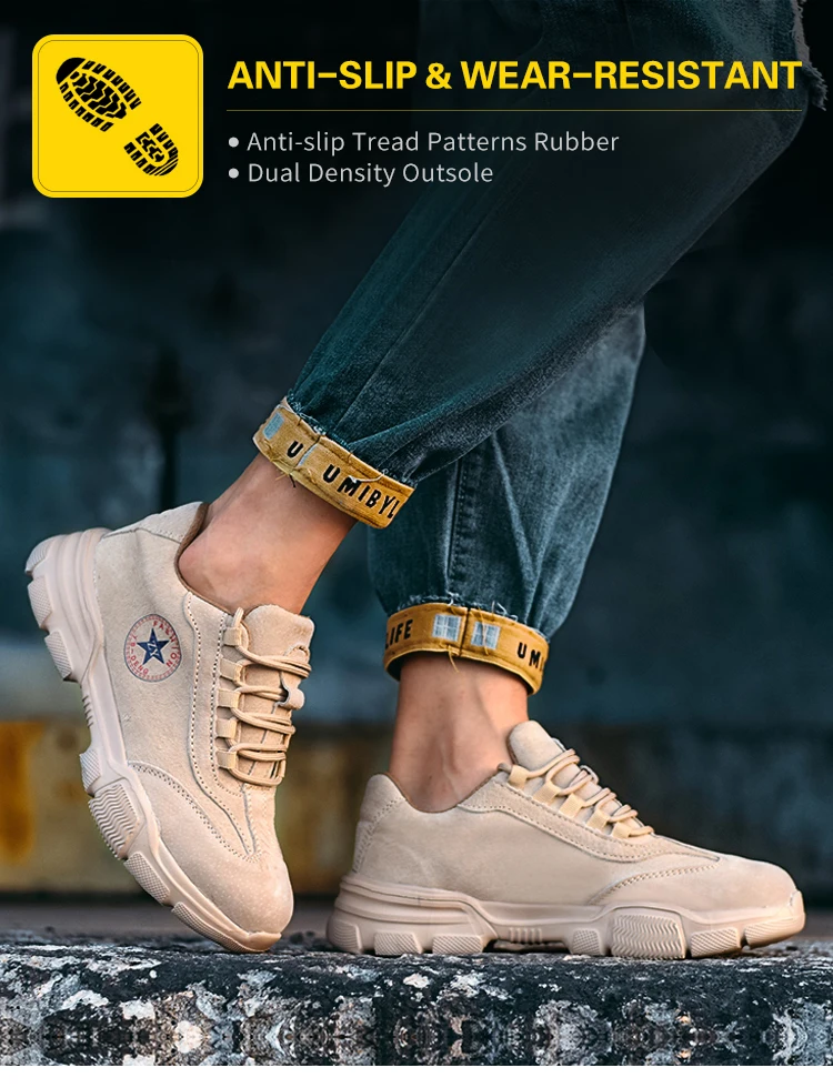 Защита от падения стального носка: европейский стандарт ударопрочность на стальную головку 200J Промежуточная подошва из кевлара анти-прокол: Эта стальная обувь для носка изготовлена из кевлара, который является защитным волокном. Он может защитить ноги от проколов острыми предметами, такими как гвозди, стальной стержень. Износостойкая резиновая подошва: прозрачная текстура, устойчивый захват на земле и нескользящая подошва. Супер светильник: это как вес пары кроссовок. Они помогут вам работать счастливо весь день, не выматывая ноги. С очень мягкими стельками и высокой эластичной подошвой ваши ноги безопасны и удобны. Трикотажный верх очень мягкий, сохраняет ваши ноги удобными и дышащими. Отлично подходит для тех, кто работает в промышленности, автопроизводстве, строительстве и производстве машин.
