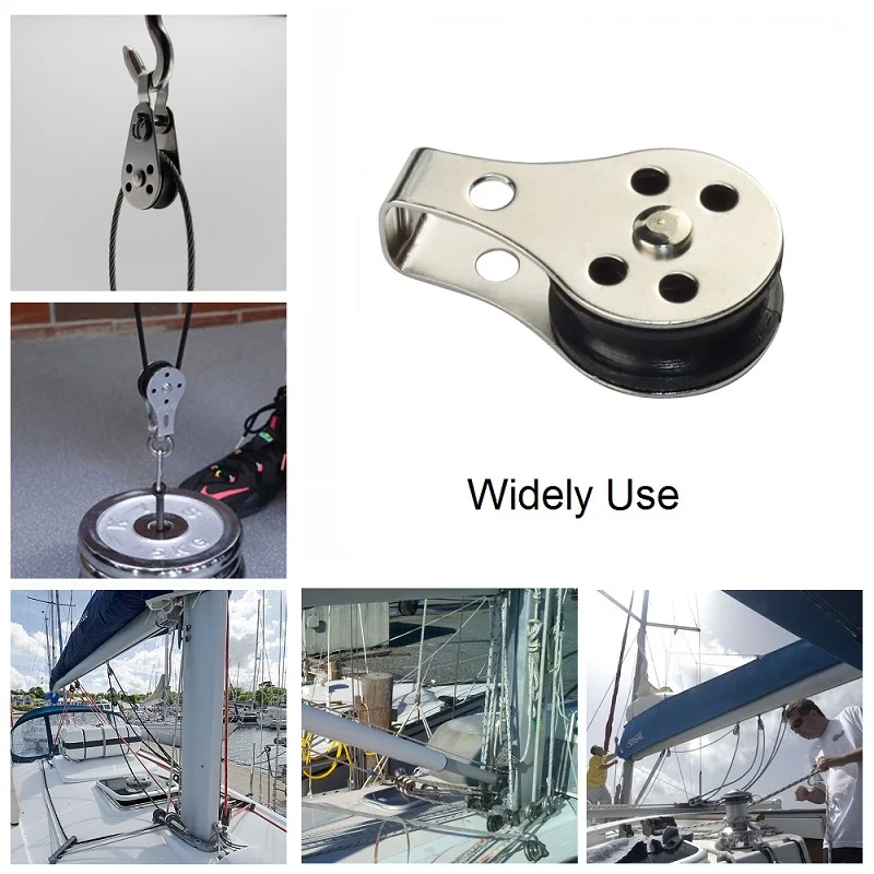 Материал: нержавеющая сталь 316 поверхность: Высокая полировка Размер: 25 мм Упаковка: 5 шт. особенность: 1. Обработаны антикоррозийным составом, не поддаваться износу с прочной конструкцией, с амортизационной подвеской светильник обработки поверхности, крепкий и прочный материал 2. Фиксированная верхняя часть для легкой обработки веревки, Гладкий Валик делает веревку проходом беспрепятственно 3. Прочный и прочный, Предназначен для использования с веревкой или шнуром для внутреннего и наружного применения, гибкий скользящий шкив с тяжелой нагрузочной емкостью подходит для множества применений