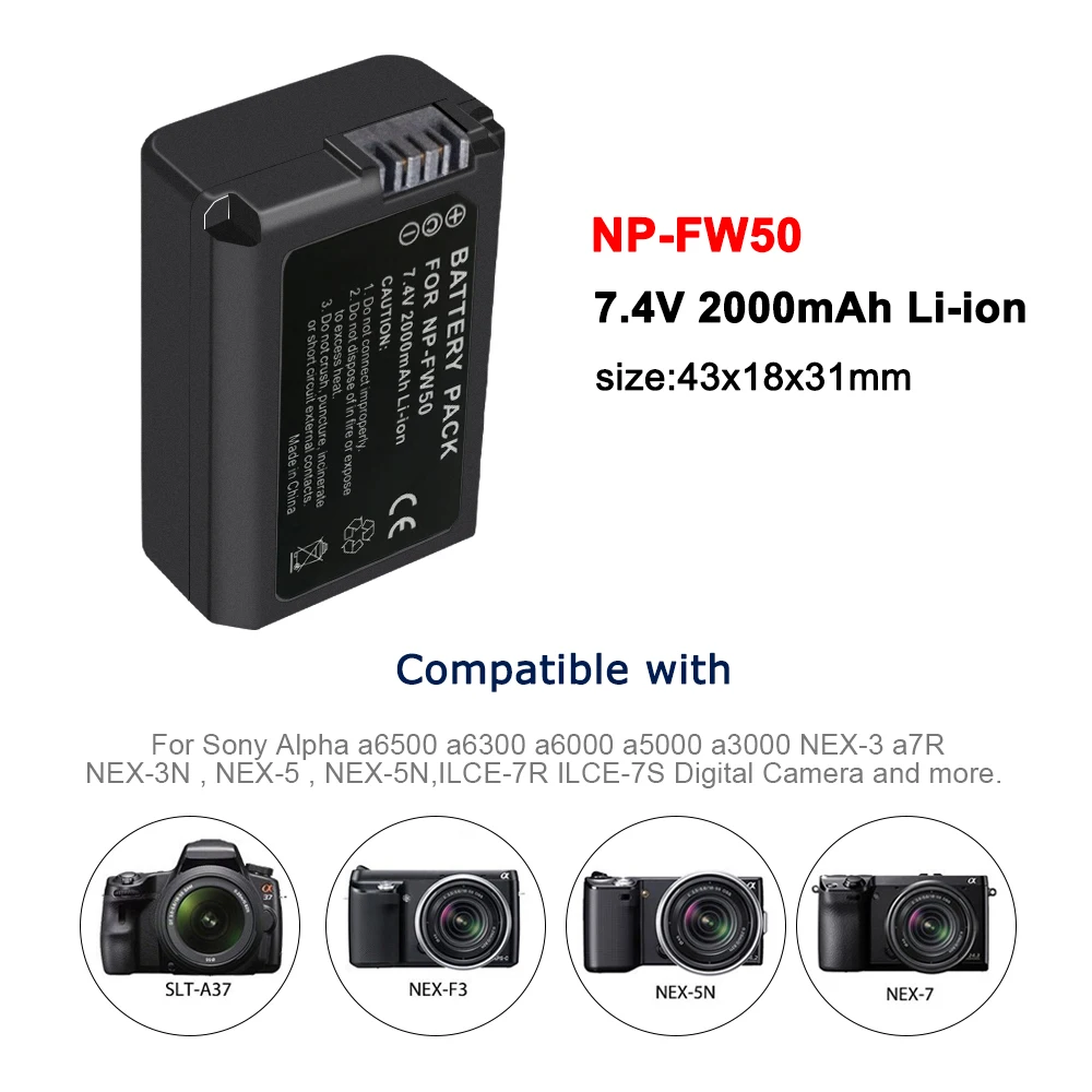 PALO 1 шт. 2000 мАч NP-FW50 NPFW50 NP FW50 Аккумулятор для Sony Alpha a33,a35,a37,a55, SLT-A33,SLT-A35,SLT-A37,SLT-A37K,SLT-A37M,SLT-A55