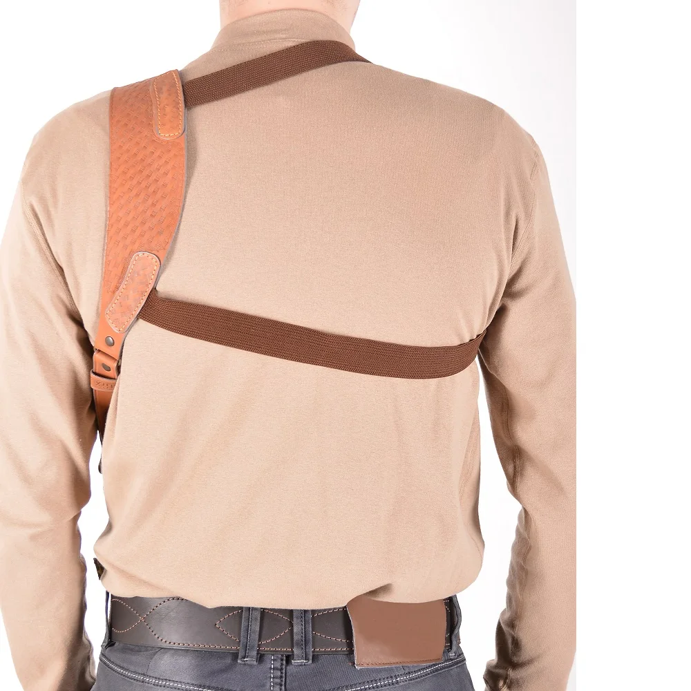 Кобура для пистолета на одноплечевой подвесной системе с вертикальным размещением оружия и подсумком под один запасной магазин. Конструкция кобуры обеспечивает плотное удержание пистолета при беге, наклоне, кувырке и т.д., а также моментальное извлечение оружия в нужный момент. 100 Коричневый Тисненый