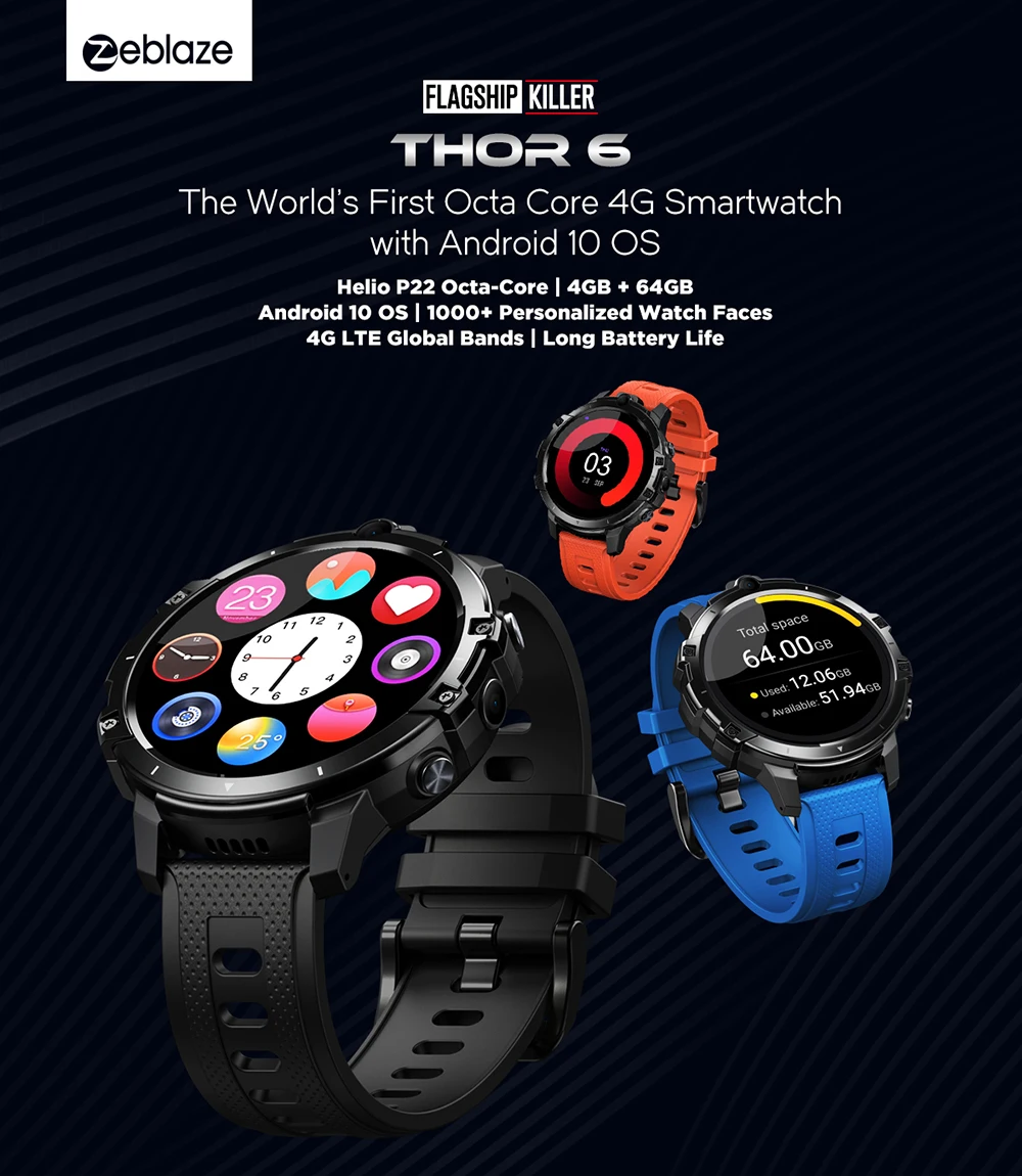 Zeblaze Thor 6 Android 10 Восьмиядерный Смарт-часы 4G LTE Bluetooth 5,0 GPS Wifi 1,6 ''IPS экран Двойная камера 5.0MP 64G память OTA.