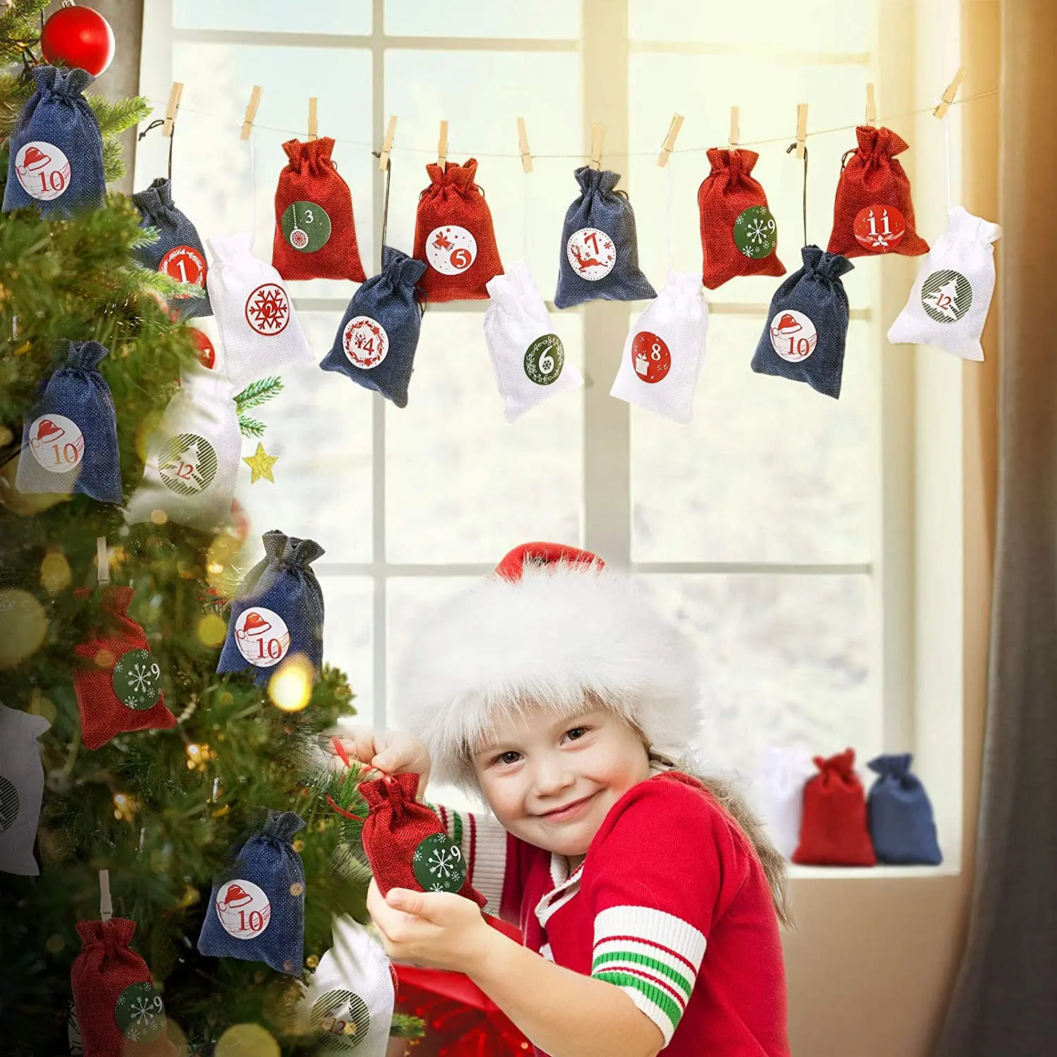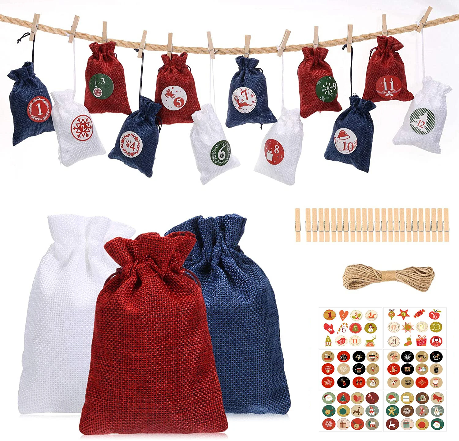Обратный отсчет до Рождества: 24 сумки с календарем, число которых составляет от 1 до 24 до Рождества, семья открывает мешковину каждый день во время прихода и находит подарки в каждом мешочке из мешковины. Очень креативная Рождественская церемония обратного отсчета. Рождественские подарочные пакеты: поставляются с 24 подарочными сумками в рождественской тематике, 3 разных цвета, три наклейки с 1-24, хлопковой веревкой 32,8 футов и деревянными зажимами 24 шт. Вы можете повесить эти сумки разными способами, чтобы удовлетворить все ваши потребности в рождественском оформлении. Уникальное Украшение: эти три разных ярких цвета сочетаются с подарочными сумками с календарем, станут идеальным рождественским декором для дома для вашего камина, на вашей двери, окне, поручни для стен и лестниц или просто положите их в корзину. Вам не придется беспокоиться о том, что визуальная скука из-за повторов цветов. Календарь многоразовый, он станет частью ваших рождественских праздников в ближайшие годы. Высокое качество: мешочки с мешочком на шнурке изготовлены из натурального гессиана, который имеет превосходное прикосновение и не такой грубый и колючий, как обычная джутовая ткань. Шнурок позволяет легко застегивать и ослаблять, можно использовать дольше. Персональные сюрпризы: сумки с рождественским календарем «сделай сам» могут быть наполнены конфетами, конфетами, печеньями или другими маленькими лакомствами, культивировать способности и творческие способности детей. Делает его гораздо более гибким и веселым для вашего ребенка или студентов, пусть они с нетерпением ждут Рождества. Цвет: 3 цвета s Спецификация: Цвет: красный, белый, синий Материал: Высококачественная Мешковина Сумка Размеры: 5,3*3,7 дюймов (24 шт.) Посылка включает: Рождественская сумка на шнурке 24 x 1 х веревка 24 x деревянный зажим Наклейка с цифрами-2 шт. Применение: -Сумки с рождественским календарем DIY делают детей веселыми, открывая каждую сумку, и вы можете использовать их снова и снова каждый год и менять сюрпризы. -Сумки с рождественским календарем «сделай сам»-отличные сюрпризы для вашего холодильника, чтобы исследовать день за днем в ожидании Рождества.
