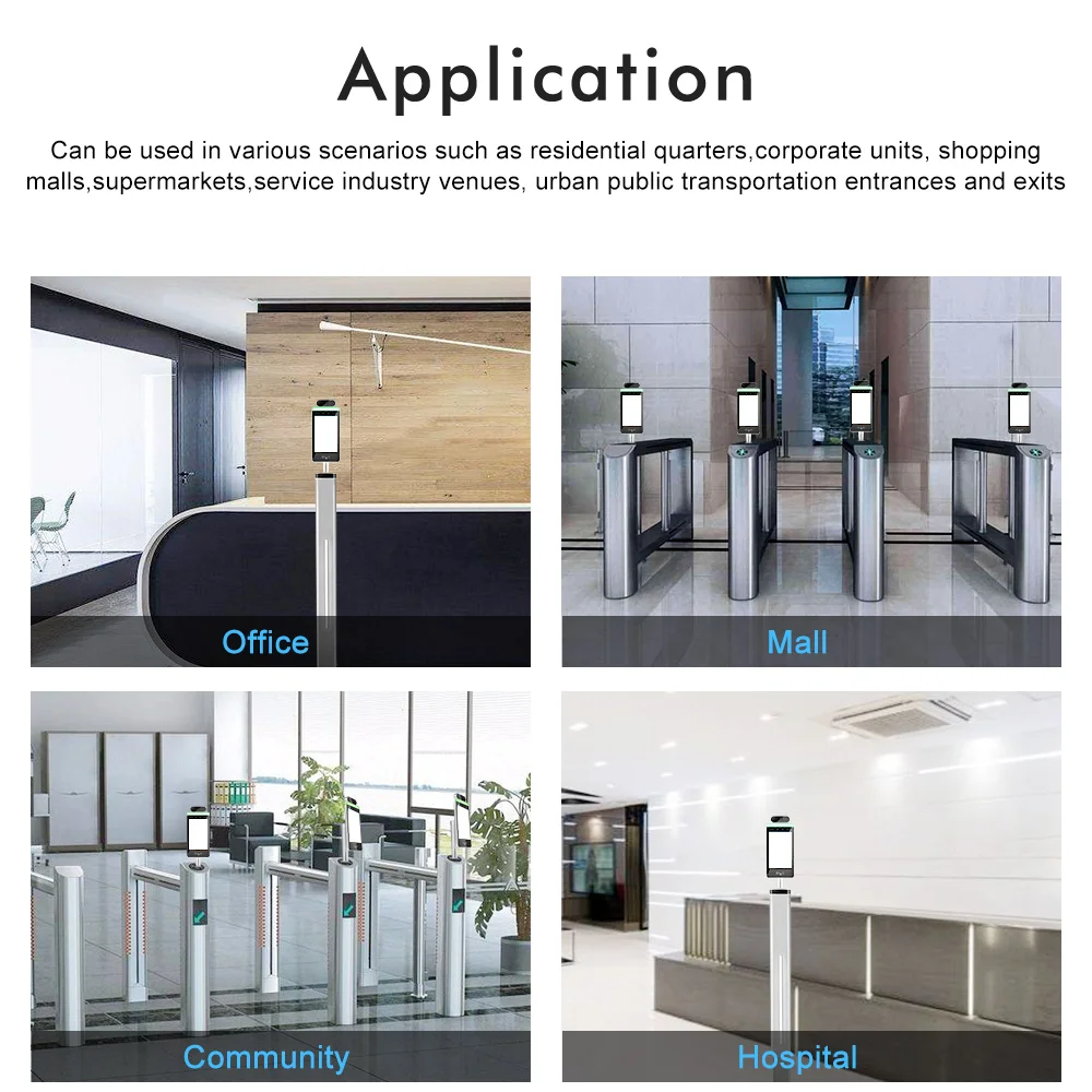 Широко используется в каналах ворот и контроля доступа посещаемости, таких как вход и выход в офис, школы, промышленность, станция, отели, магазины, супермаркеты, отделы безопасности и другие многолюдные области, для достижения безопасного и эффективного контроля доступа персонала, который вы могли бы четко знать, что вы находитесь в безопасной среде