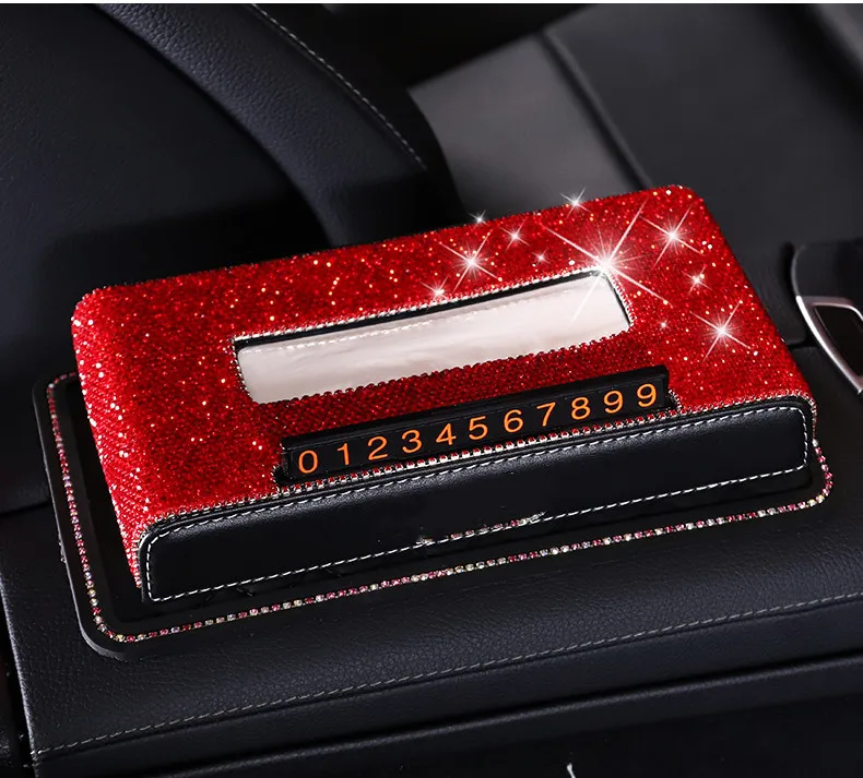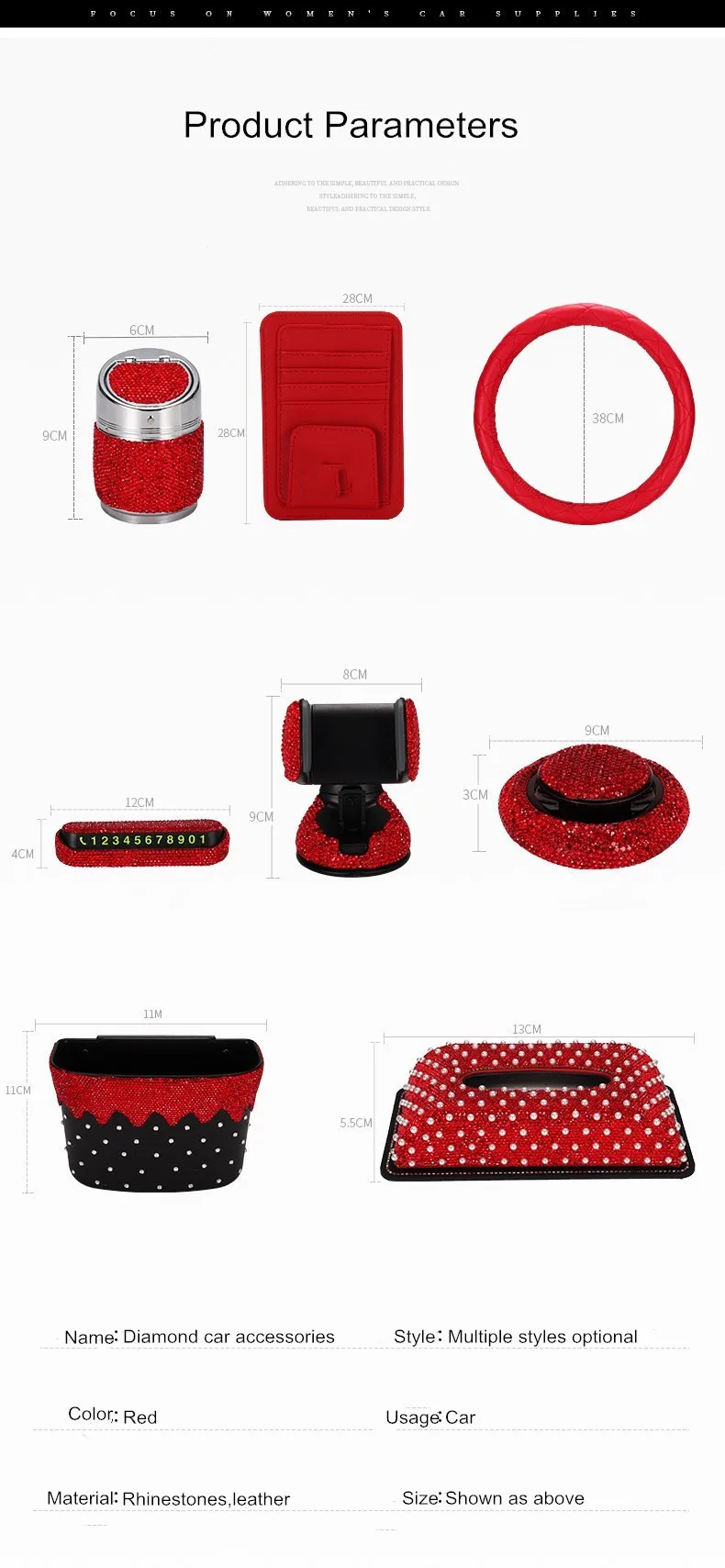2021 Новые блестящие красные стразы, пепельница, коробка для салфеток, мусорный бак Чехол рулевого колеса автомобиля, аксессуары для интерьера автомобиля, подарок