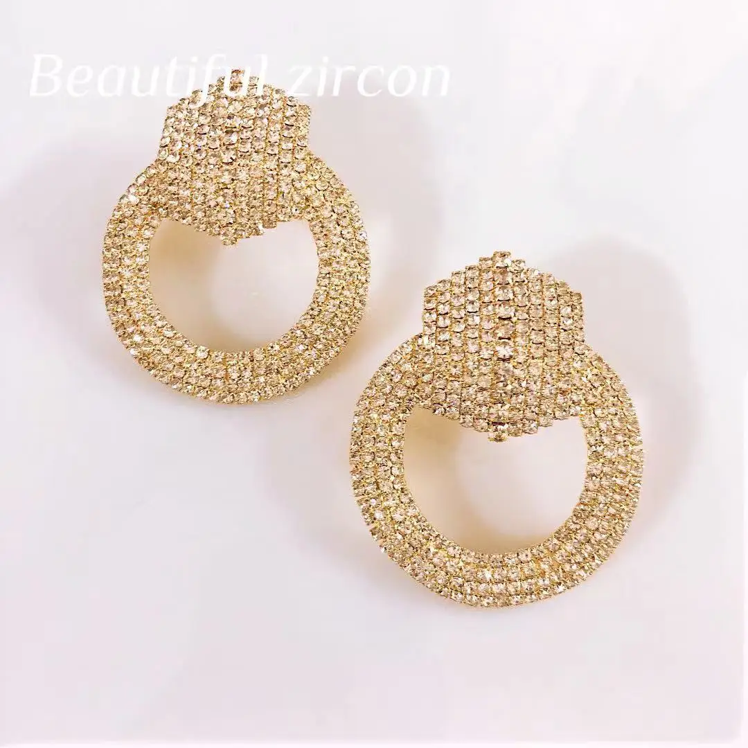 Европейские и американские большие круглые серьги-стразы, Блестящие кристаллы, женские серьги для вечеринок, ювелирные изделия, модные серьги для вечевечерние, подарки